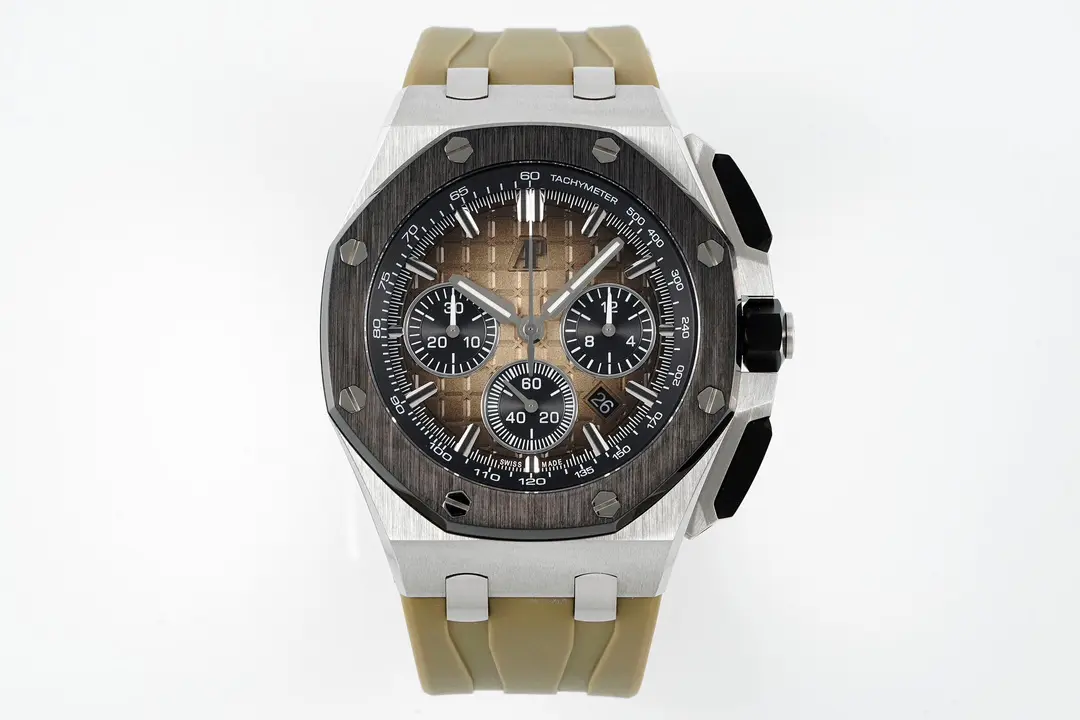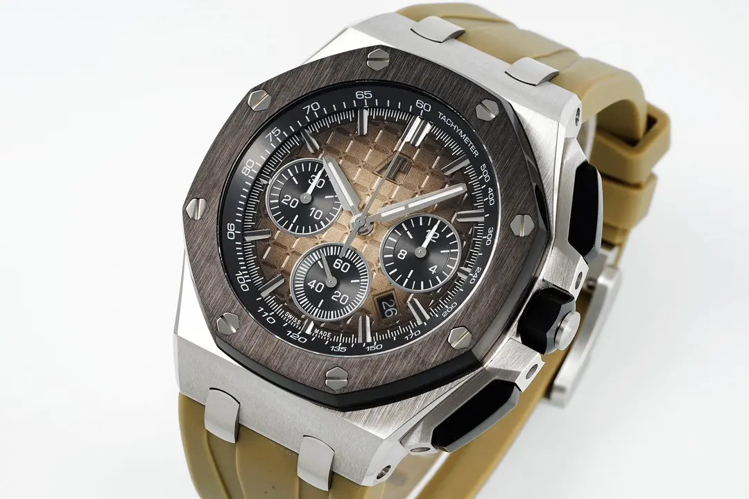 - Unique Design: This watch is inspired by the AP Royal Oak Offshore Series and features a dial that has a unique desert-yellow smoked finish.