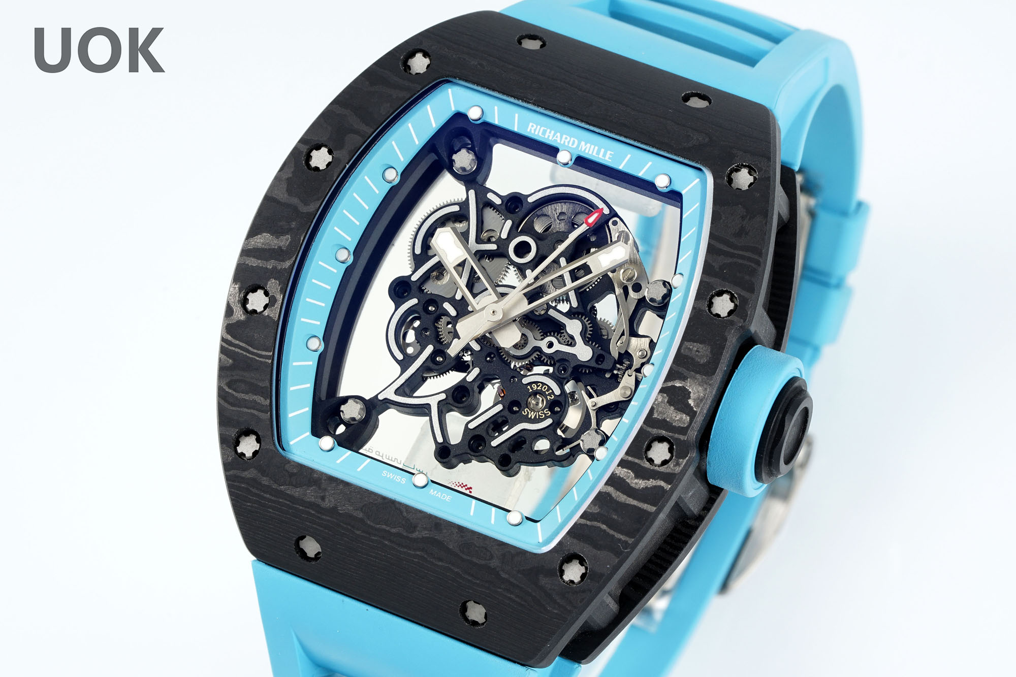 Best Replica RICHARD MILLE RM 55 – Swiss Movement Super Clone with Carbon Case & Blue Rubber Strap