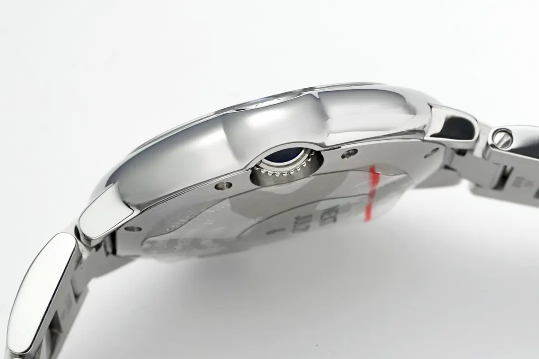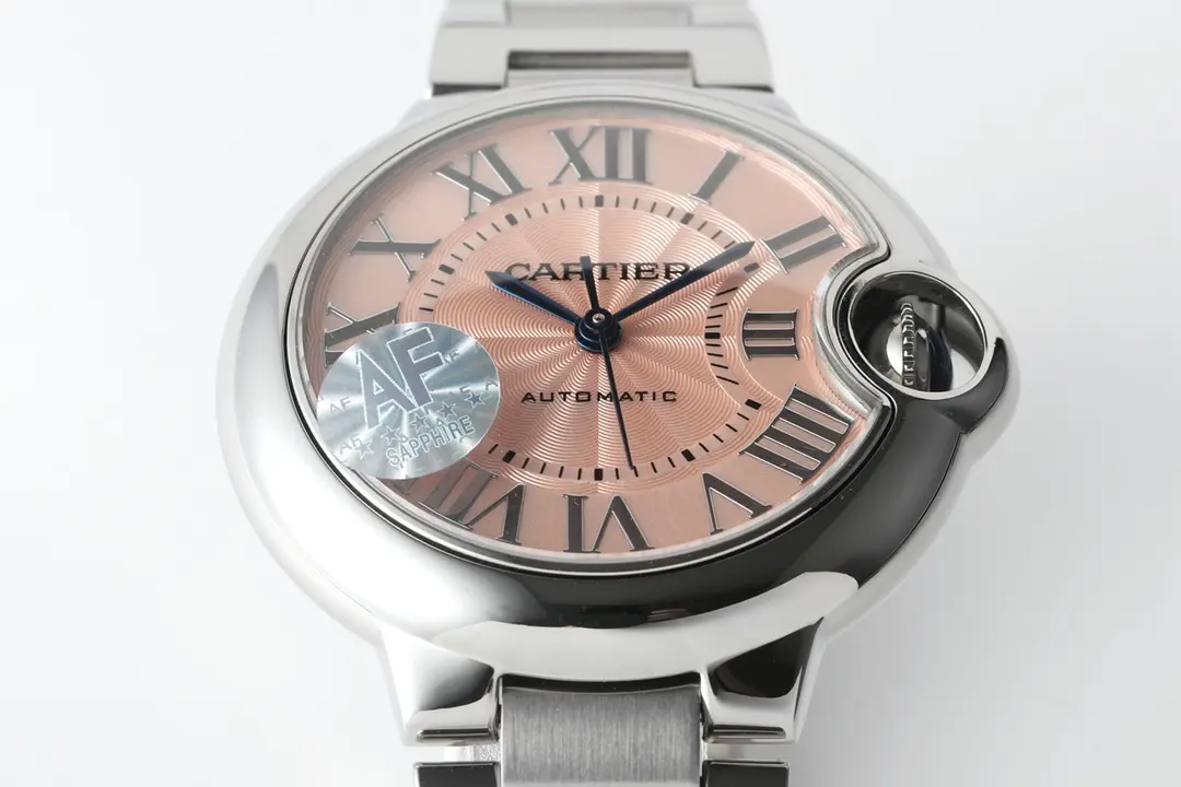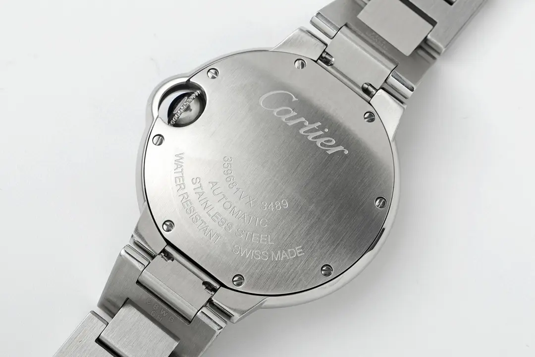 - Equipped with an exclusive Super Cal.076 mechanism that mirrors original accuracy and quality. It is virtually indistinguishable on inspection. Interchangeable parts: Each component is interchangeable with original Cartier components, which ensures exceptional workmanship and attention to details. The Cartier ballon bleu 33mm features a stainless steel case and a pink dial. The meticulously designed timepiece is perfect for collectors who are looking for something special, including those seeking.