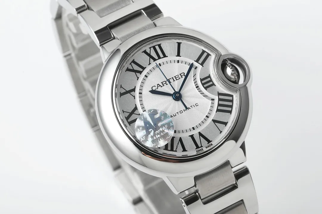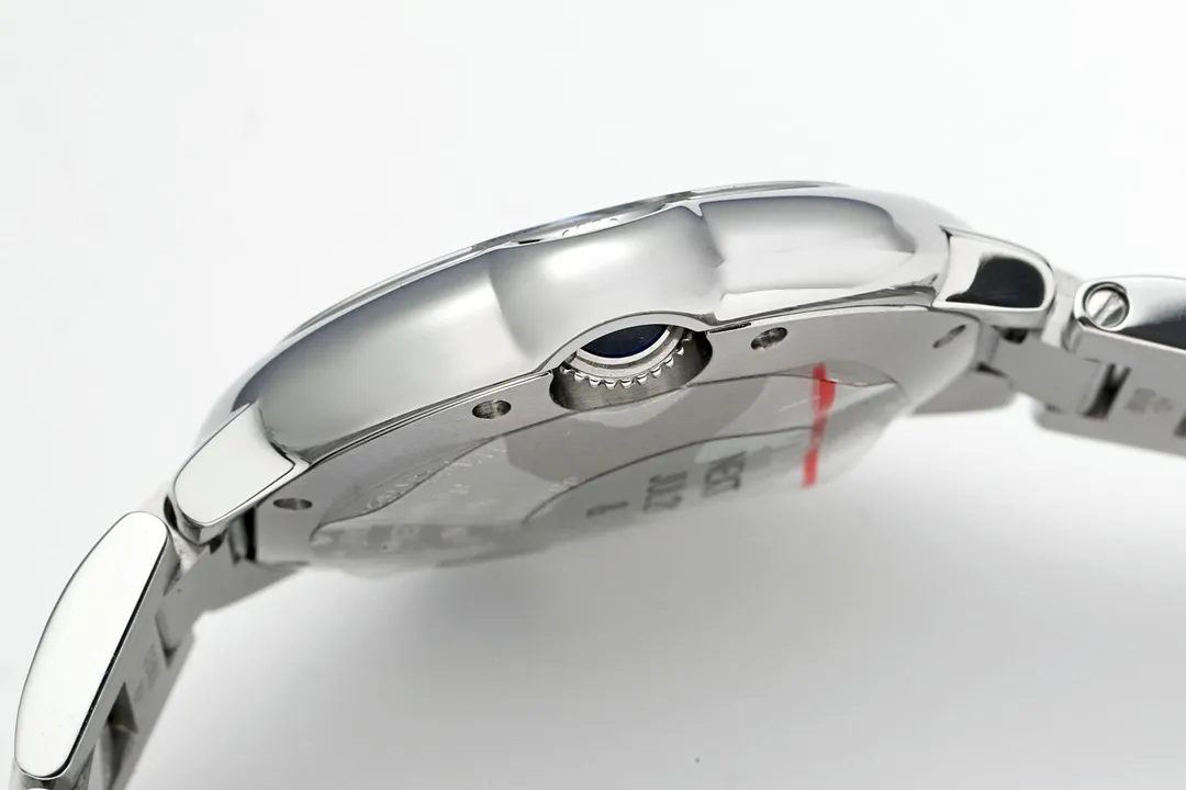 - Dials are genuine European factory dials in white, pink, and red, which match the original design. Swiss Steel Blue Hands This watch features Swiss steel blue hand and an original spinel stone. Super Cal.076 This watch is powered by an exclusive, integrated Super Cal.076 mechanism that’s identical to the original. This guarantees accurate timekeeping. Watches are of unrivalled quality. The watches are as good as the originals, both in terms of appearance and performance. The Cartier Ballon Bleu Silver Watch represents the pinnacle of luxury. It is made to exacting standards with the original thickness of its case. The timepiece also includes premium materials like blue sapphire. Genuine European dials with a style that mirrors iconic