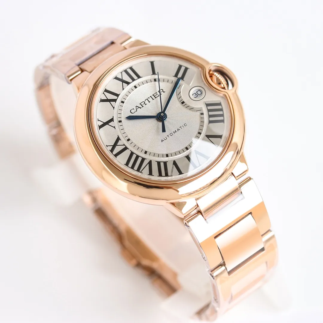 Materials: Rose-gold case and bracelet for a luxurious, elegant look. The automatic movement is the 2824 Swiss upgraded movement, which provides precise timing. Dial: A dark yellow dial is paired with blue hands to add a sophisticated and unique touch. Ballon Bleu crown is a distinctive blue cabochon. Date Window: A date window is located at 3 o’clock for convenience. Glass: Sapphire Crystal with an anti-reflective surface for clarity and durability. Water Resistant: Excellent water resistance. Suitable for daily wear. Roman numerals hour markers and fluted or sword-shaped hands enhance the vintage look. Strap options: Leather and stainless steel straps are available in a variety of sizes and styles. Cartier Ballon Bleu Rose Gold Automatic Watch: The epitome of luxury. This timepiece is made with rose gold and features a Swiss automatic 2824 movement. It ensures precision. This timepiece features a dark yellow dial, with Roman numerals and blue hands. The crown is a blue cabochon. This watch is perfect for gifts or to add to your collection. It combines exquisite craftsmanship with functionality, and makes a great addition. Explore options such as Find the perfect match. Discover more about styles to elevate your collection.