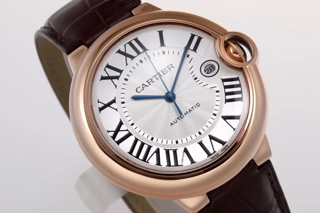 Cartier Ballon Bleu 42mm Rose Gold Brown Leather