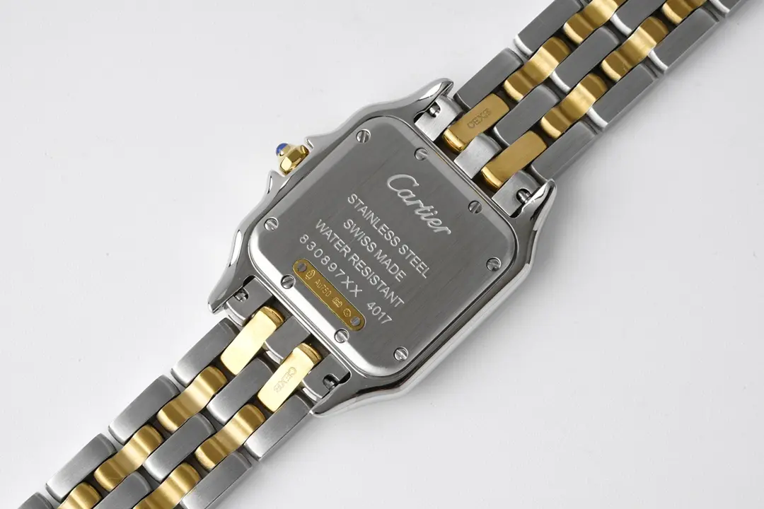 The Cartier Panthere De Cartier Women’s Watch features a blend of functionality and elegance. The watch features a solid caseback, classic silver dial with 18K gold highlights, and a stainless-steel case. Explore options such as a or discover the to achieve a similar luxurious style.