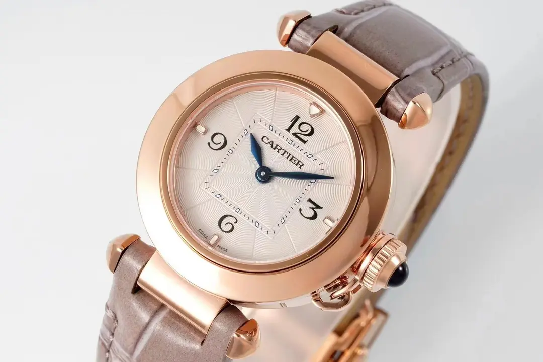 - Elegant Design. The watch has a rose gold 30mm case and a leather strap that gives it a timeless, sophisticated look. Swiss-A-Grade Quality Case: The watch is crafted with precision and boasts Swiss-A-grade case quality, which ensures premium finish. Straps: The watch comes with two strap options, one stainless steel and the other calf leather. This allows for customization as well as style flexibility. Genuine Detailing: This watch features authentic details such as the dial with pearl engraving, the blue steel hands and the crown covered in synthetic spinel. The watch is equipped with an accurate Swiss quartz timekeeping movement. The 2023 Cartier pasha de Cartier women’s watch is a luxurious timepiece. The 30mm rose-gold timepiece features a leather band and combines high-quality workmanship with elegance. It offers a variety of style options, as well as the appeal of an exquisite collection.