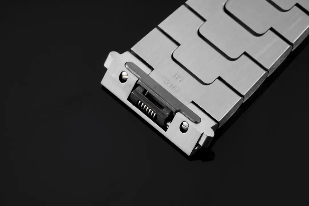 - Case Material: Stainless steel with gold and silver. Crown: Seven-sided sapphire-faceted, seven-sided crown. Dial: Sunray dial in white with Roman numerals. Hands: Blue sword-shaped hands. Sapphire crystal: scratch-resistant. Two stainless steel straps are included, one SmartLink and another QuickSwitch. Double-folding clasp for fastening.