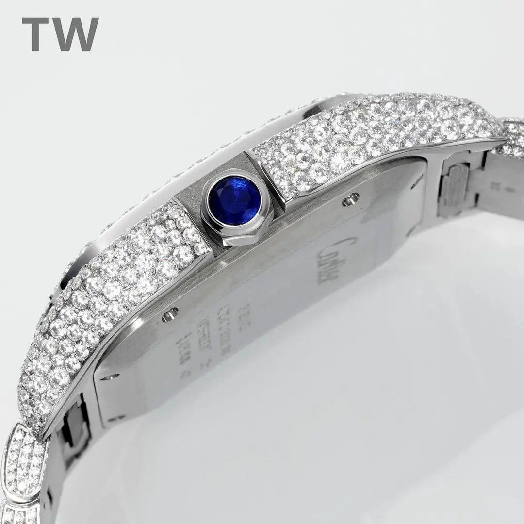 - Luxurious Design: The watch features a full pave diamond bezel and case, with a stunning silver finish, making it a statement piece of luxury.