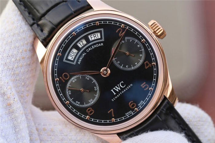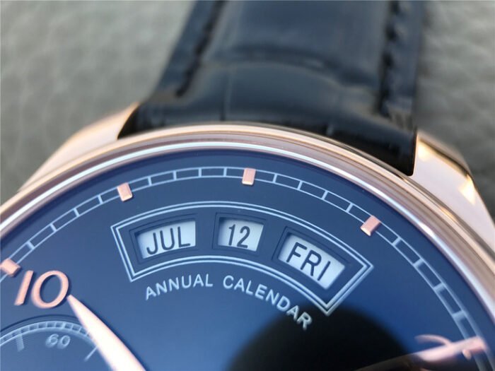 IWC Portuguese series IW5034 18K Rose Gold — Premium 1:1 super clone. Case: 316L stainless steel case, polished finish.. Crystal: Genuine sapphire crystal with AR coating.. Movement: Clone Cal. 52010 (28,800 bph, 7-day power reserve).. Price: $1650. 12-month movement warranty. Free worldwide shipping on orders over $1,200.