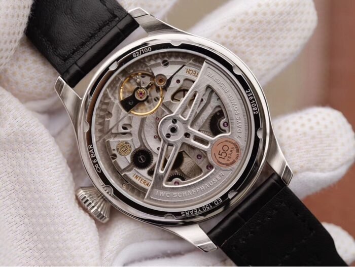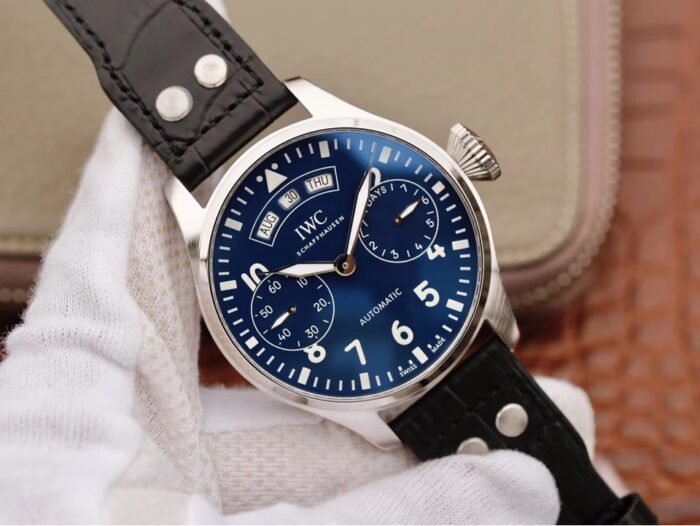 IWC Big Pilot Annual Calendar IW502702 — Premium 1:1 super clone. Case: 316L stainless steel case, polished finish. Crystal: Genuine sapphire crystal with AR coating. Movement: Clone Cal. 52010 (28,800 bph, 7-day power reserve). Price: $1650. 12-month movement warranty. Free worldwide shipping on orders over $1,200.