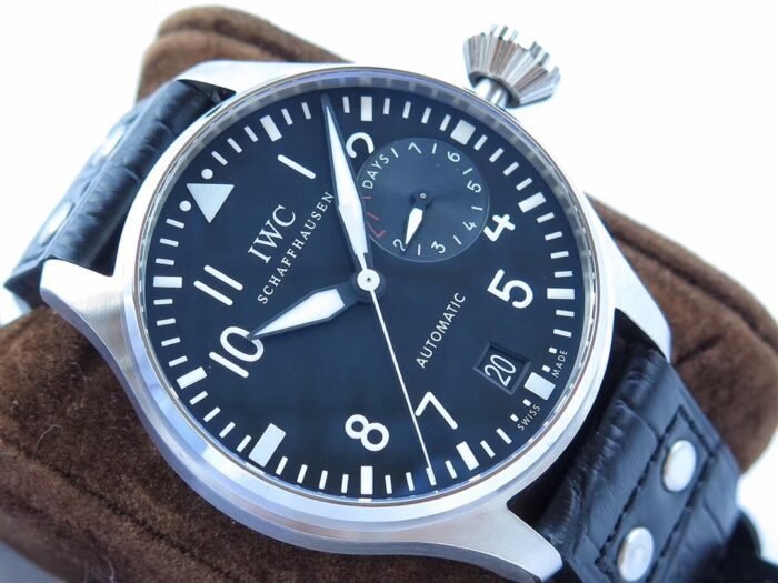 IWC BIG Pilot’s Alexei Nemov IW500431 Functional Power Reserve — Premium 1:1 super clone. Case: 316L stainless steel case, polished finish. Crystal: Genuine sapphire crystal with AR coating. Movement: Clone Cal. 52010 (28,800 bph, 7-day power reserve). Price: $1650. 12-month movement warranty. Free worldwide shipping on orders over $1,200.