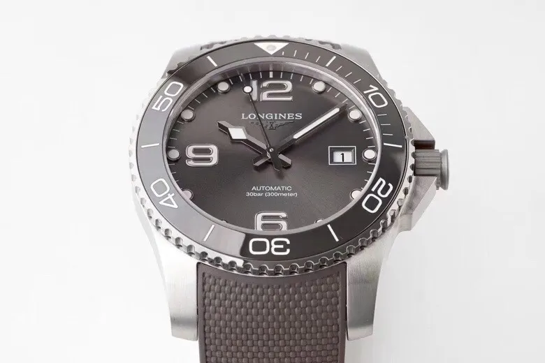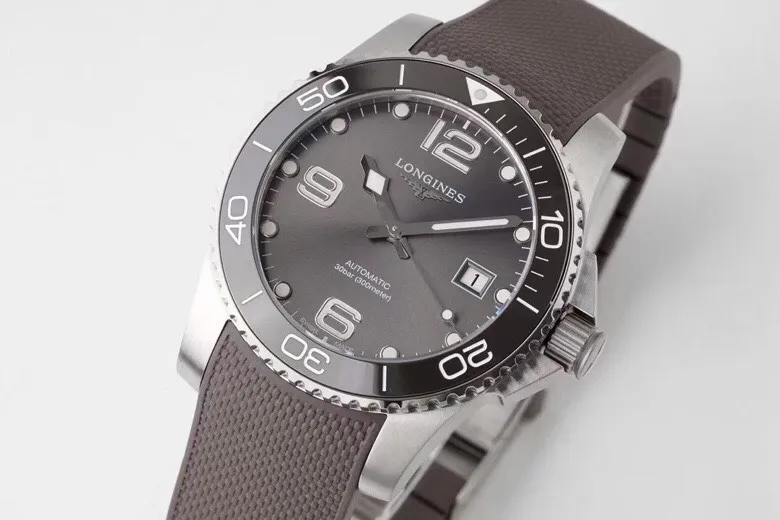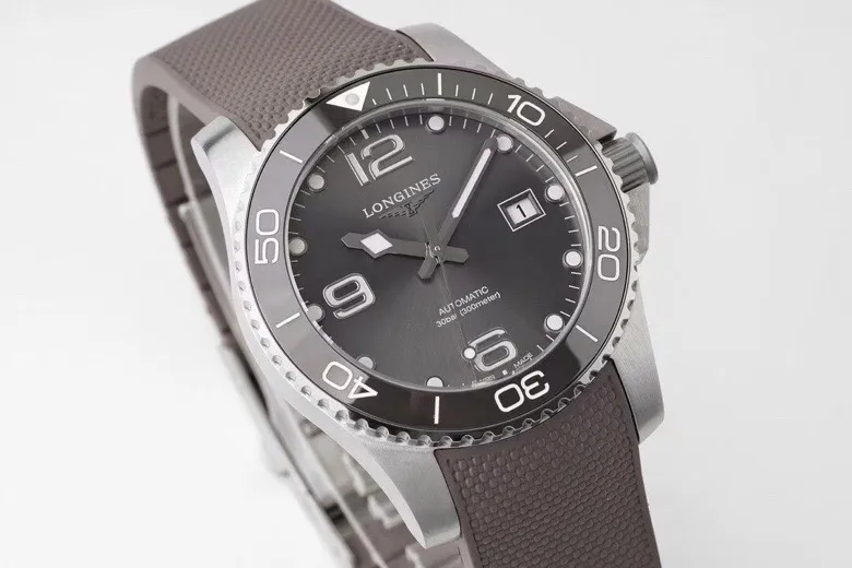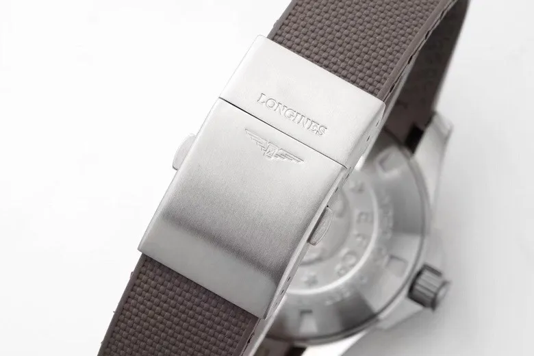 Experience the Longines Conquest with its grey dial and automatic movement, encased in a 41mm stainless steel body. The rubber strap adds a modern touch, blending style with functionality.