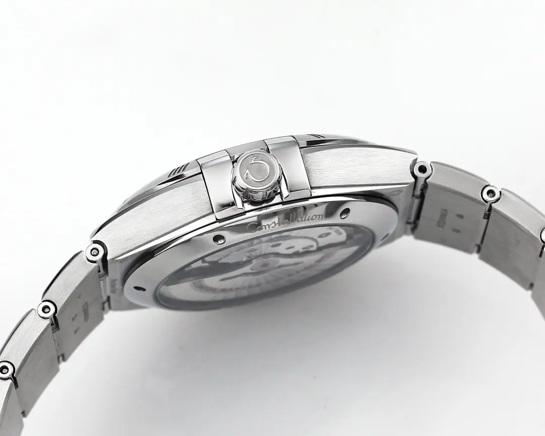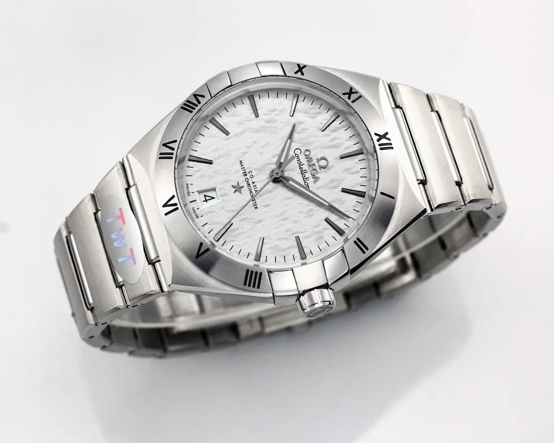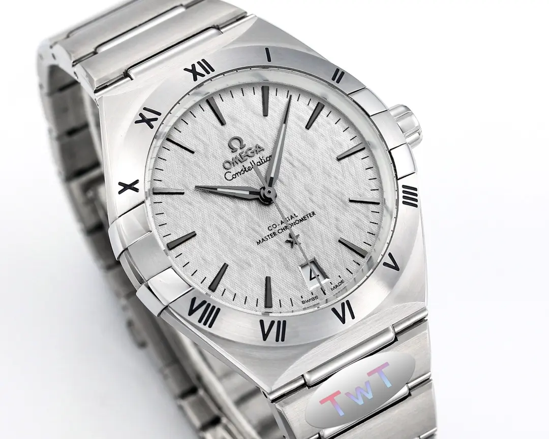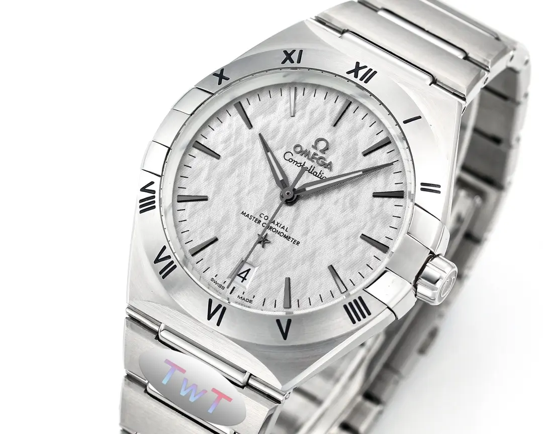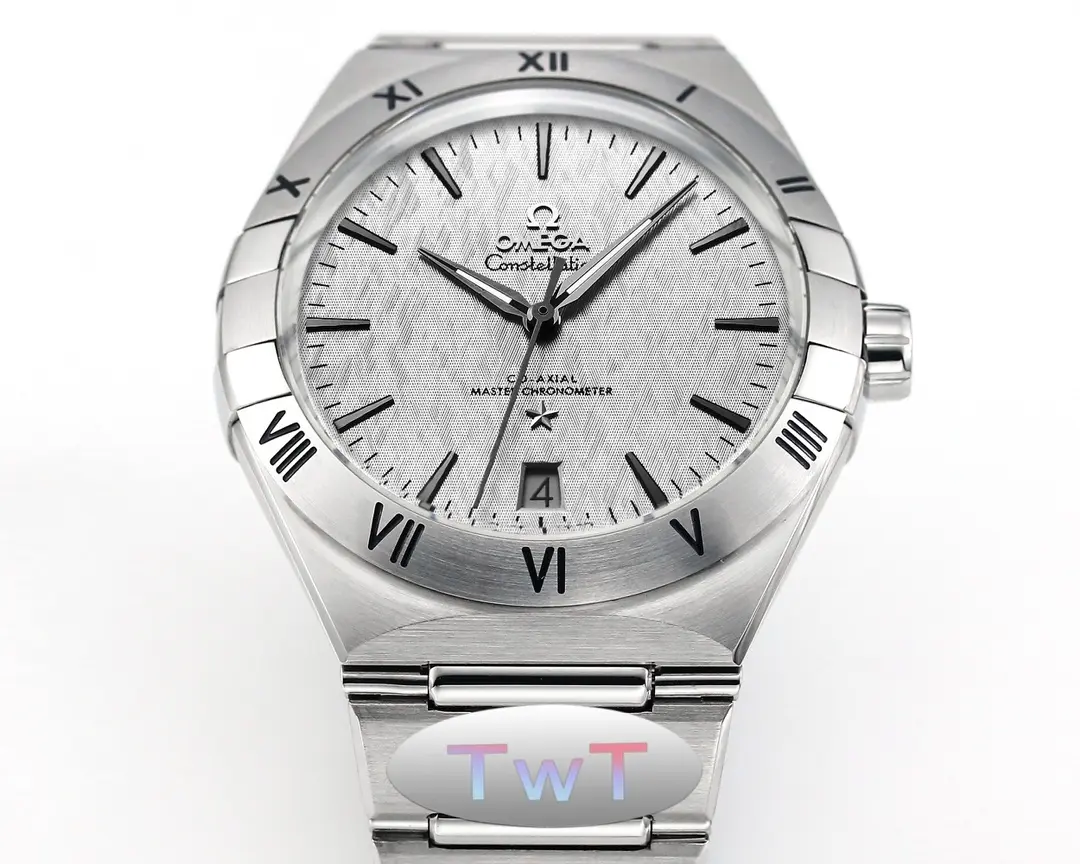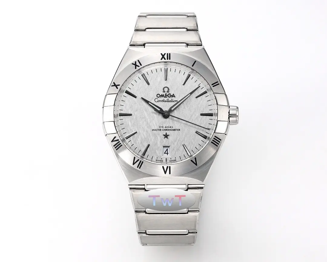 The Omega Constellation Star Series 5th Gen watch features a 41mm silver case with a ceramic bezel, offering a blend of elegance and durability. Its sophisticated design and precise movement make it a standout timepiece.
