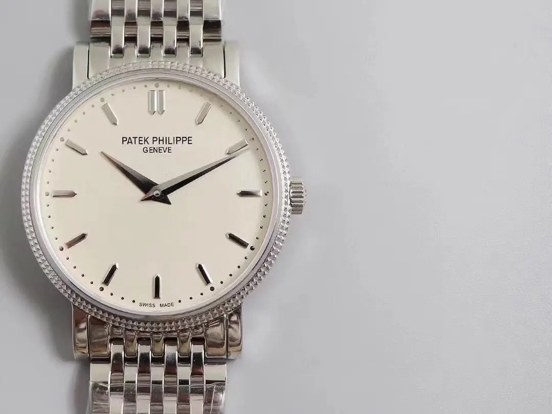 The Patek Philippe Calatrava 5120G watch boasts a minimalist silver dial with Roman numerals, offering a timeless elegance. Its ultra-thin design and versatile strap options make it a perfect blend of style and functionality.