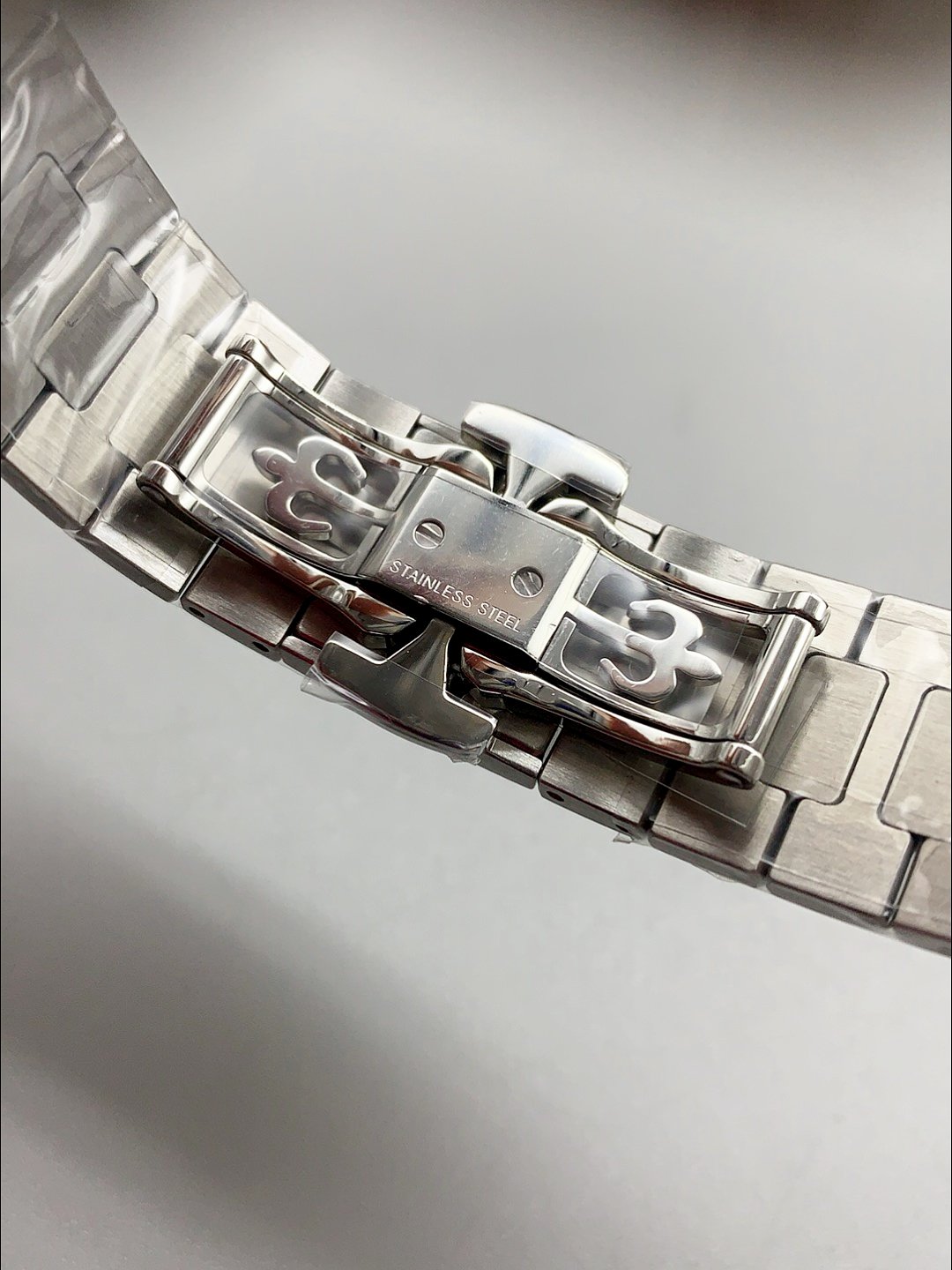 Patek Philippe 5980 Silver Chronograph — Premium 1:1 super clone. Case: 904L stainless steel or 18k gold case. Crystal: Genuine sapphire crystal with AR coating. Movement: Clone Patek caliber (mechanical automatic). Price: $900. 12-month movement warranty. Free worldwide shipping on orders over $1,200.