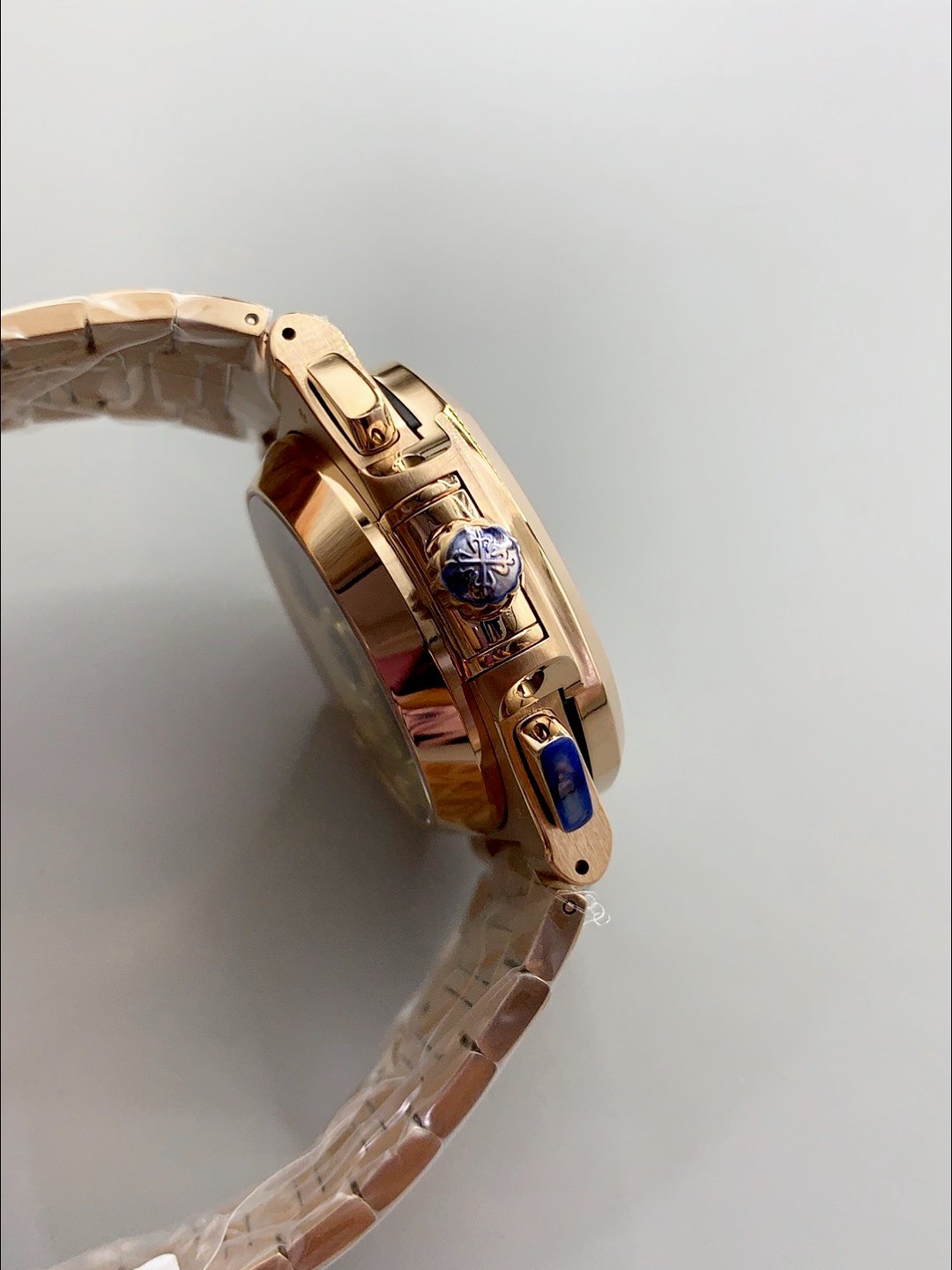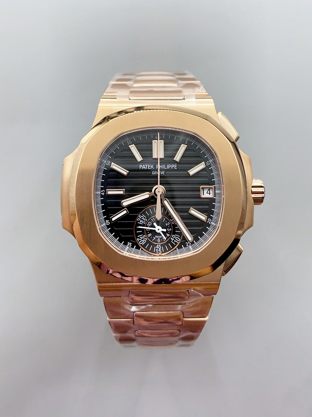 Patek Philippe Nautilus 5980/R Rose Gold 904L Steel Case in Black Dial () — Premium 1:1 super clone. Case: 904L stainless steel or 18k gold case. Crystal: Genuine sapphire crystal with AR coating. Movement: Clone Cal. 5711A (28,800 bph, date at 3 o’clock, small seconds). Price: $1,650. 12-month movement warranty. Free worldwide shipping on orders over $1,200.