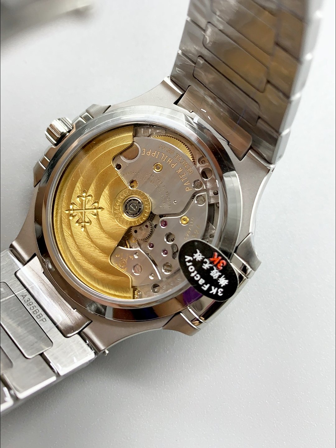 Patek Philippe Nautilus 5726/1A Blue Rubber — Premium 1:1 super clone. Case: 904L stainless steel or 18k gold case. Crystal: Genuine sapphire crystal with AR coating. Movement: Clone Cal. 5711A (28,800 bph, date at 3 o'clock, small seconds). Price: $900. 12-month movement warranty. Free worldwide shipping on orders over $1,200.