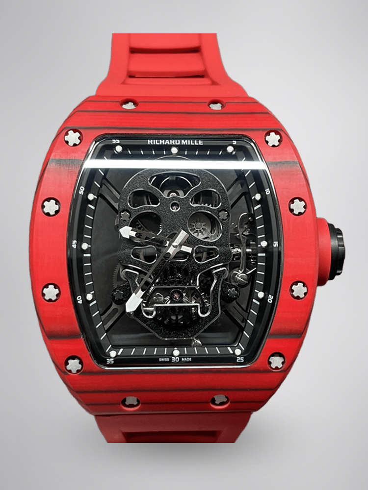 Replica Richard Mille RM 52-01 Skeleton Skull Dial Men’s Watch – Swiss Movement, Red Carbon Case