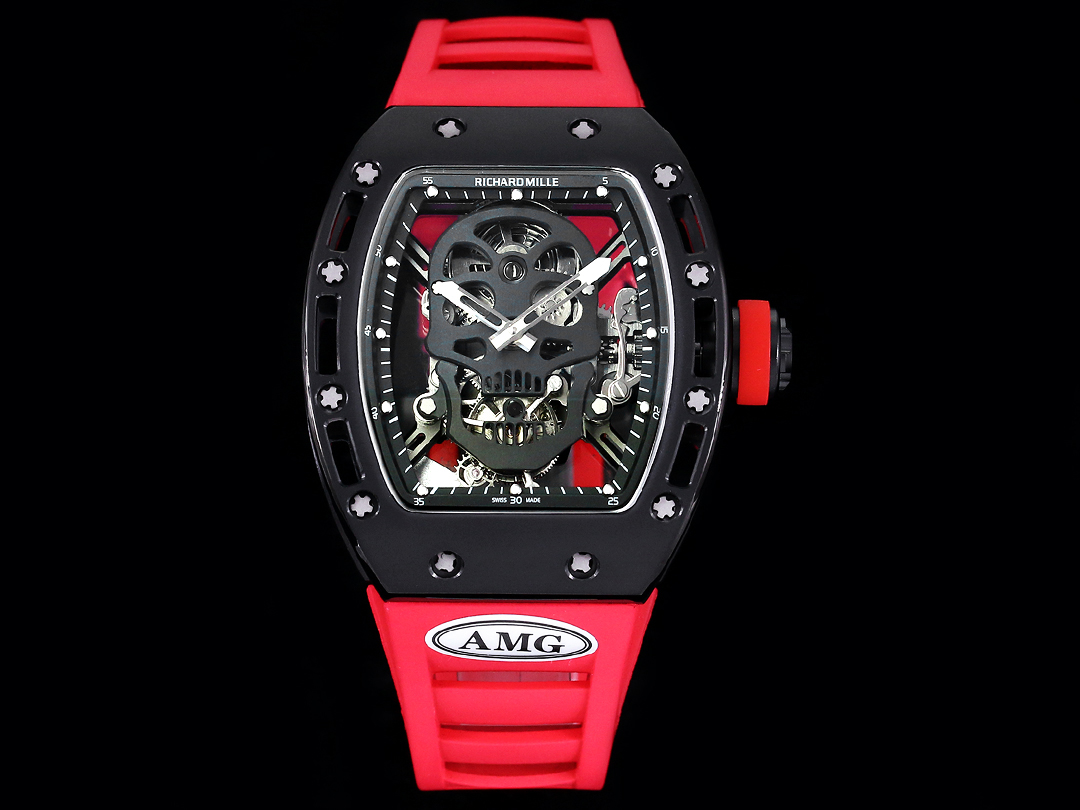 The watch case is constructed of aerospace-grade titanium, 30% lighter than regular titanium watches but considerably stronger. Each detail, from the locking case design to the skeleton see-through dial, has been meticulously crafted to replicate the real RM052 to every detail. The very high-quality rubber strap sourced from Indonesia is designed to closely match the original Richard Mille rubber strap and boasts maximum comfort and flexibility.