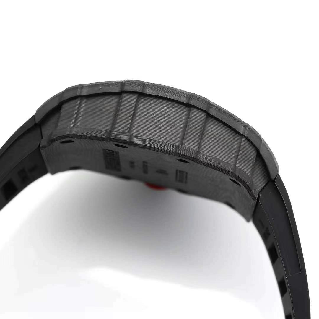 The case of the watch is composed of high-performance NTPT carbon fiber, providing strength without weight. It features sapphire crystal glass that provides clear visibility and heavy-duty protection. Titanium alloy components are utilized on the caseback and inner structure, CNC-machined to precision for a perfect, smooth fit. Black rubber strap and titanium folding clasp finish it off, giving the utmost comfort and performance.