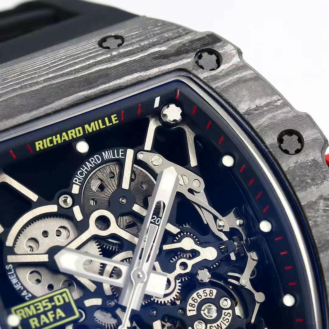 Richard Mille RM 35-01 Rafael Nadal Replica Swiss Watch – Skeleton Dial, NTPT Carbon Case, Black Rubber Strap
