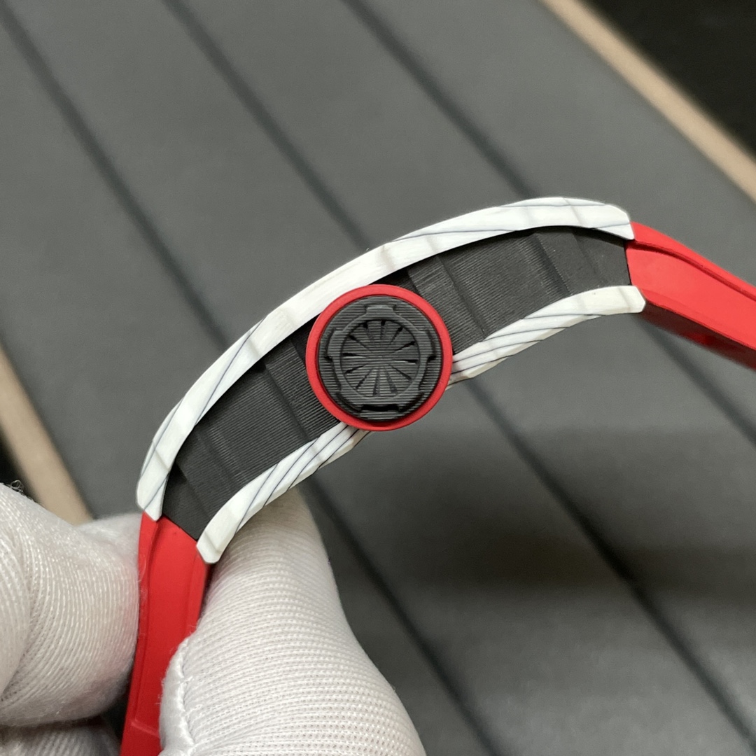 Richard Mille RM 35-01 Replica Rafael Nadal White Carbon Case Red Strap Watch | Swiss Movement, Skeleton Dial