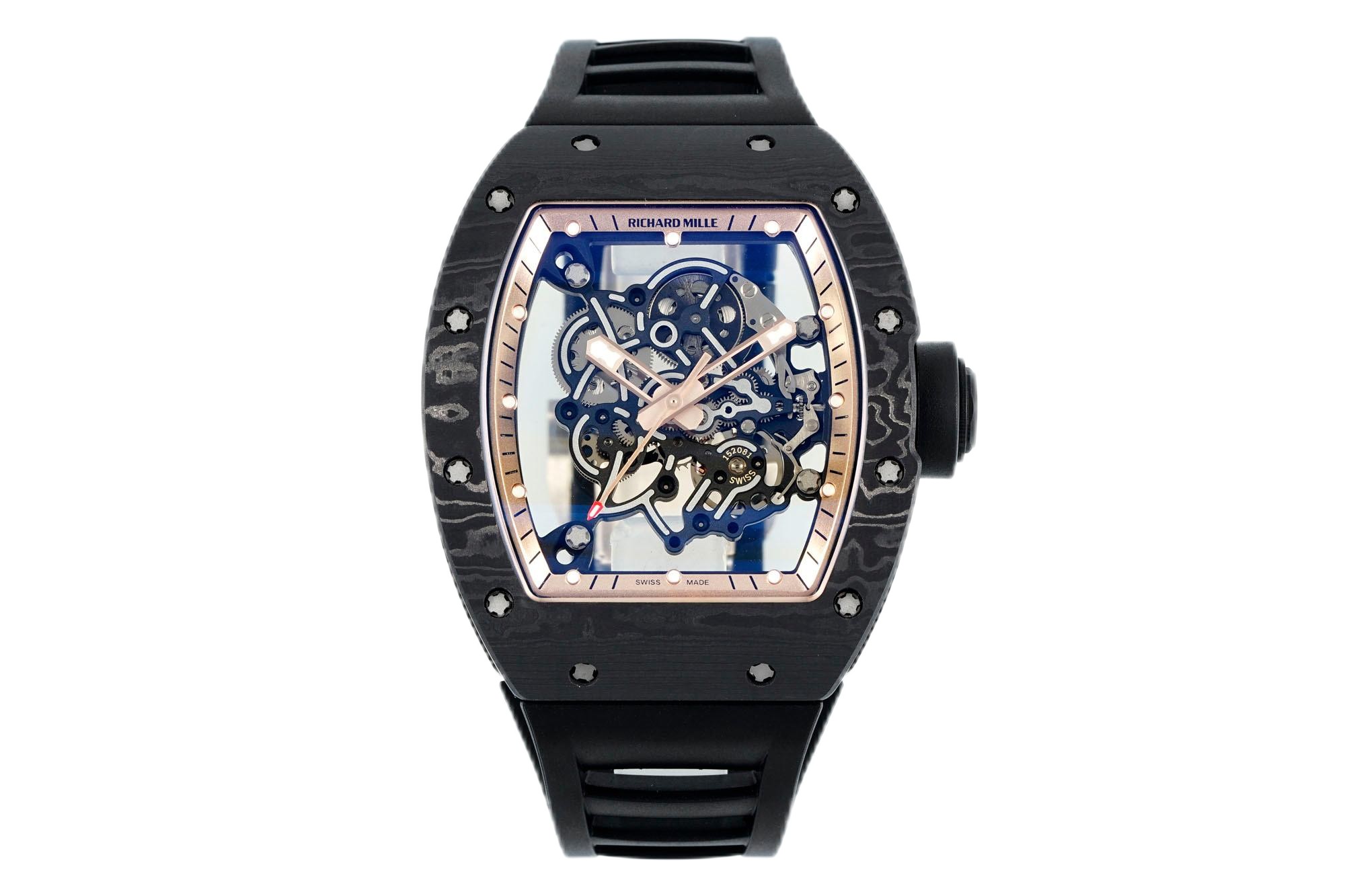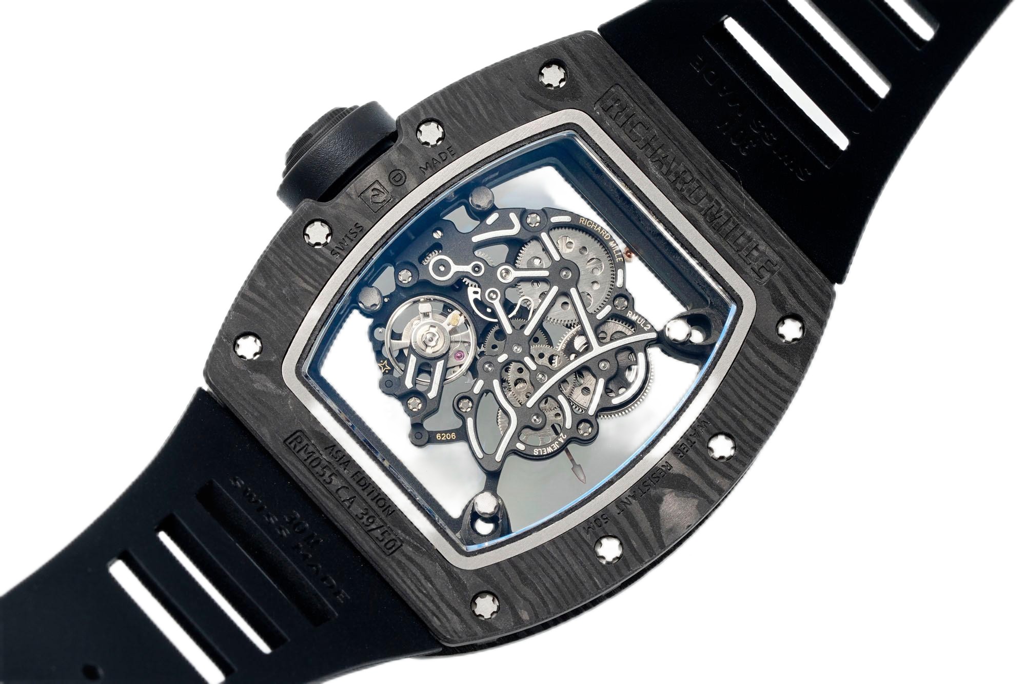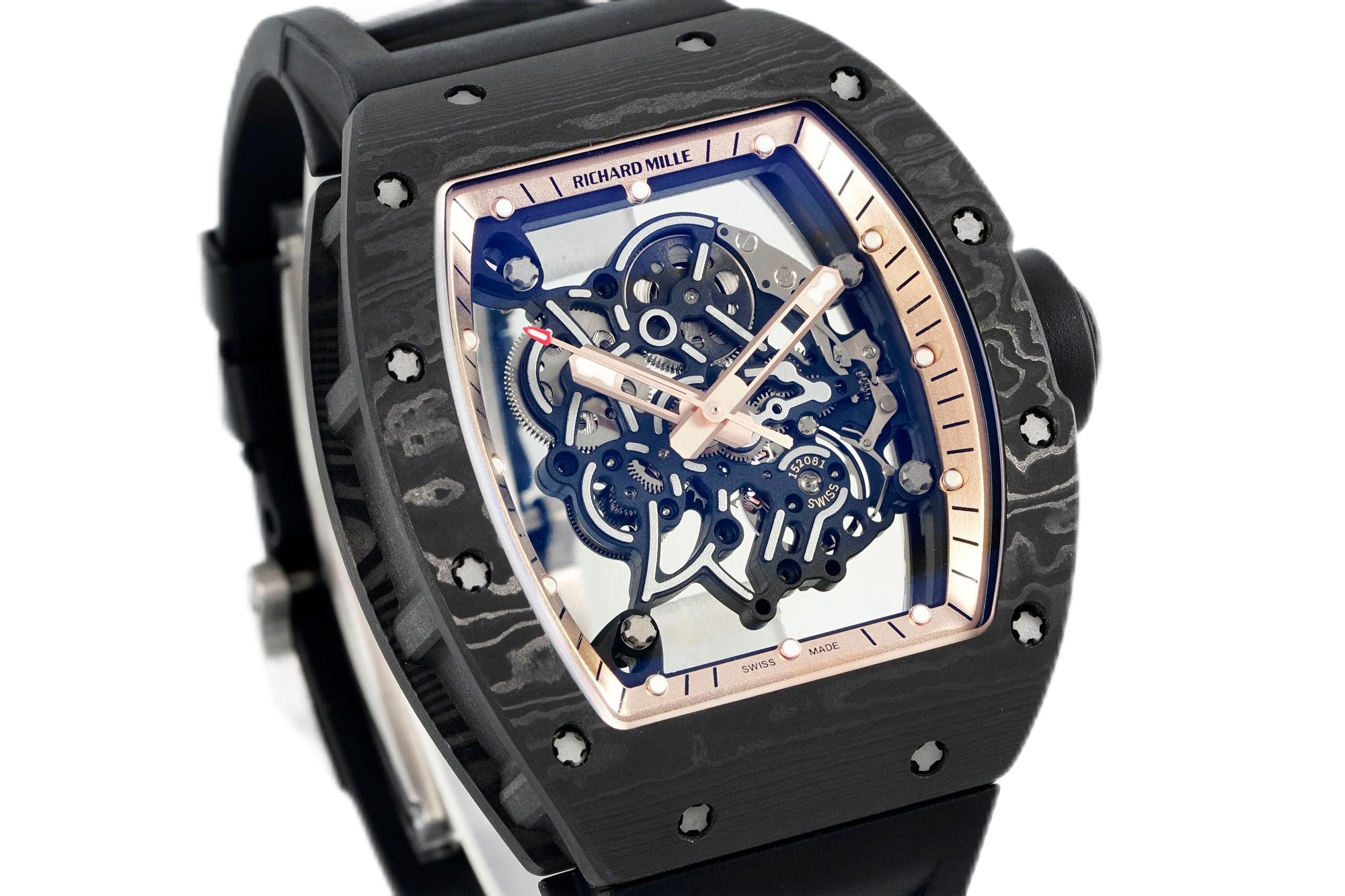 Richard Mille RM055 Skeleton Watch with Black Rubber Strap – Swiss Replica