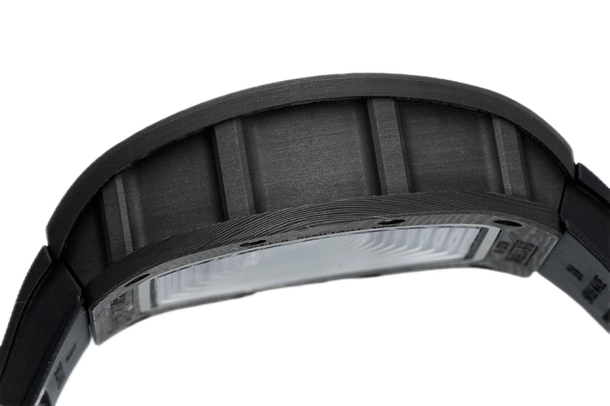 Richard Mille RM055 Skeleton Watch with Black Rubber Strap – Swiss Replica — Premium 1:1 super clone. Case: Titanium / carbon composite tonneau case. Crystal: Genuine sapphire crystal front and back. Movement: Clone RM caliber (skeletonized automatic). Price: $899. 12-month movement warranty. Free worldwide shipping on orders over $1,200.
