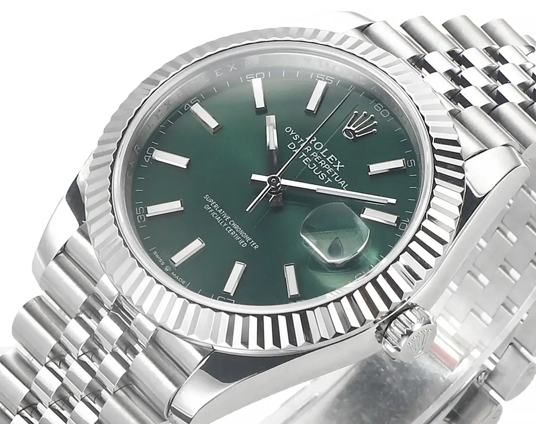 This New Rolex Datejust 42mm features an elegant green dial with a Jubilee stainless steel bracelet. It combines elegance and durability. The high-quality movements ensure reliable performance and make it an elegant addition to any collection.
