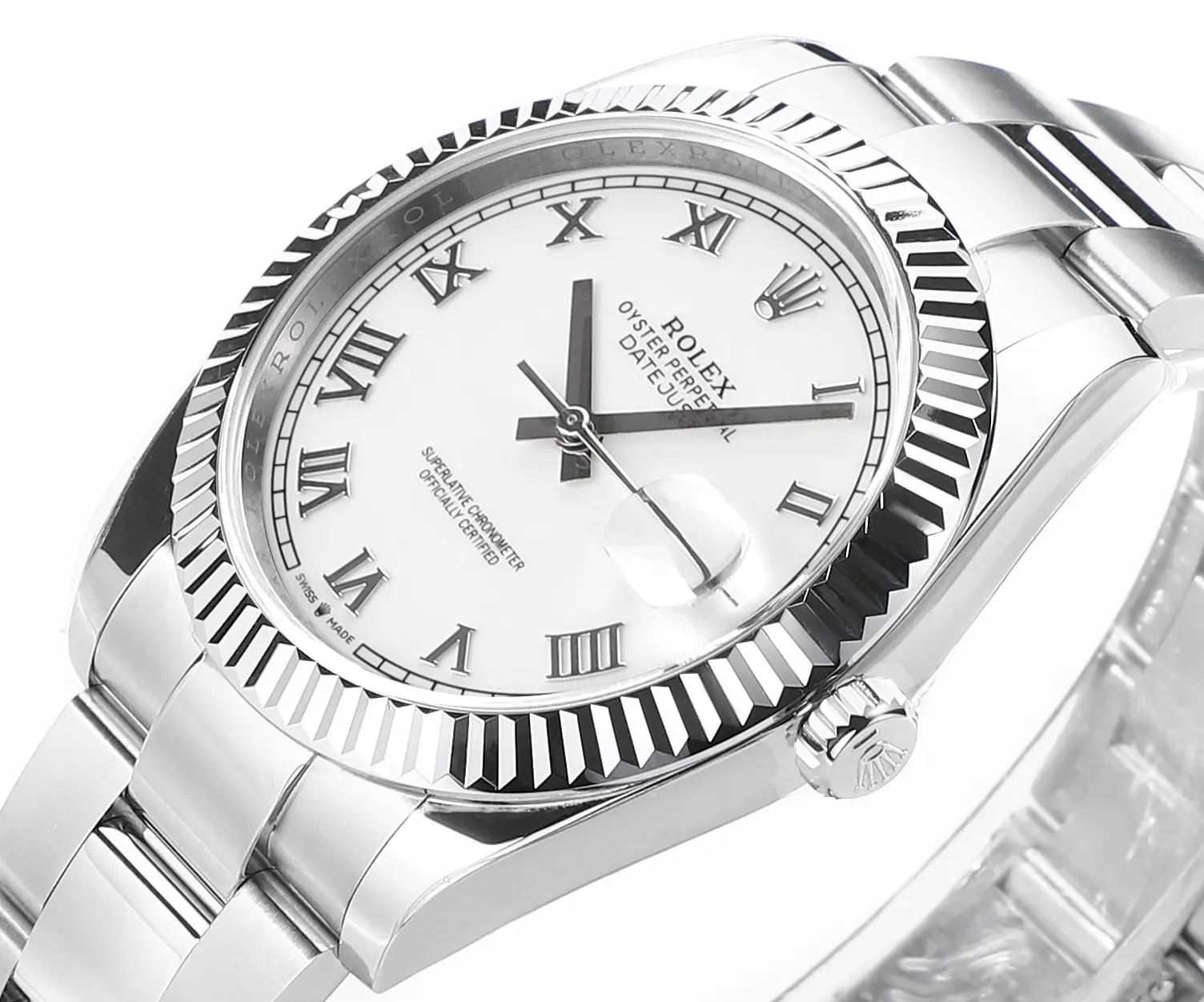 Rolex Datejust 41mm Silver Fluted Bezel White Dial