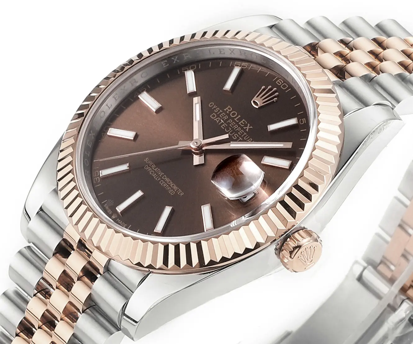 Rolex Datejust 41mm Watch – Brown Dial, Two-Tone Steel and Rose Gold, Fluted Bezel