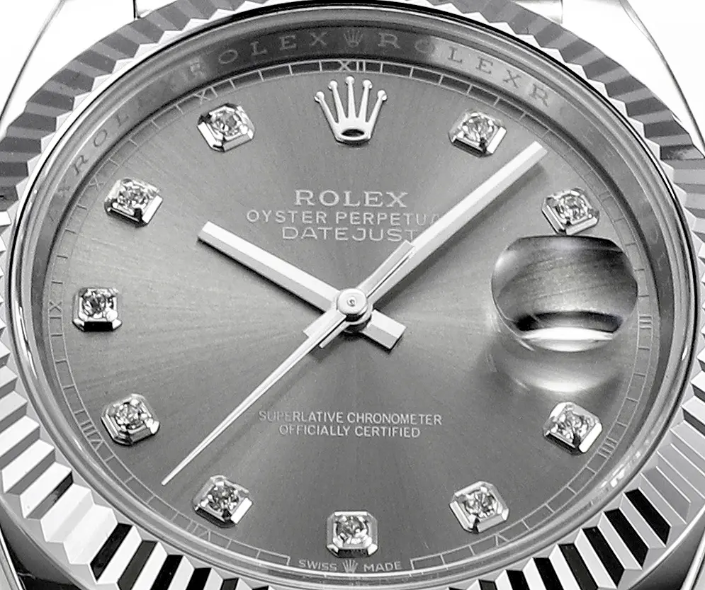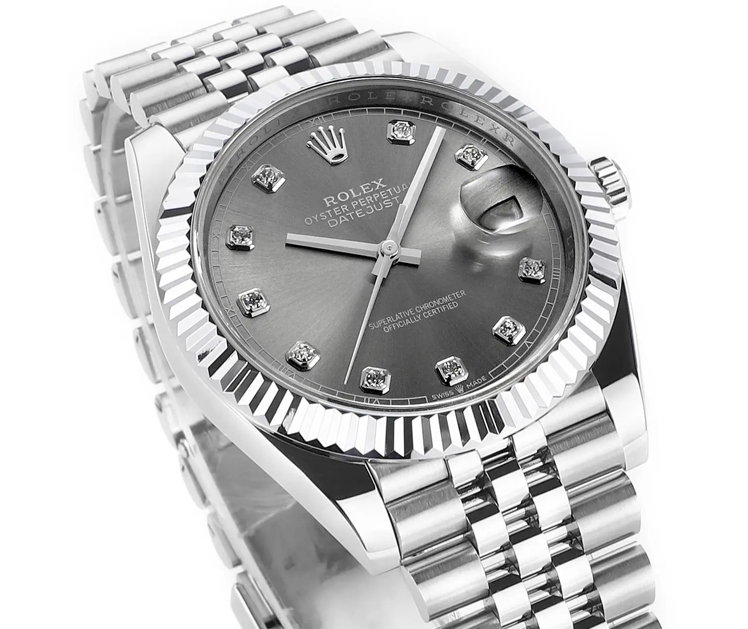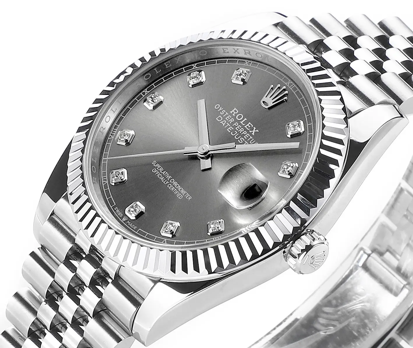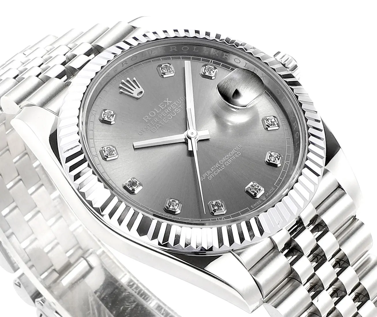 Rolex Datejust 41mm Watch – Silver Fluted Bezel, Grey Dial, Stainless Steel Bracelet Rolex