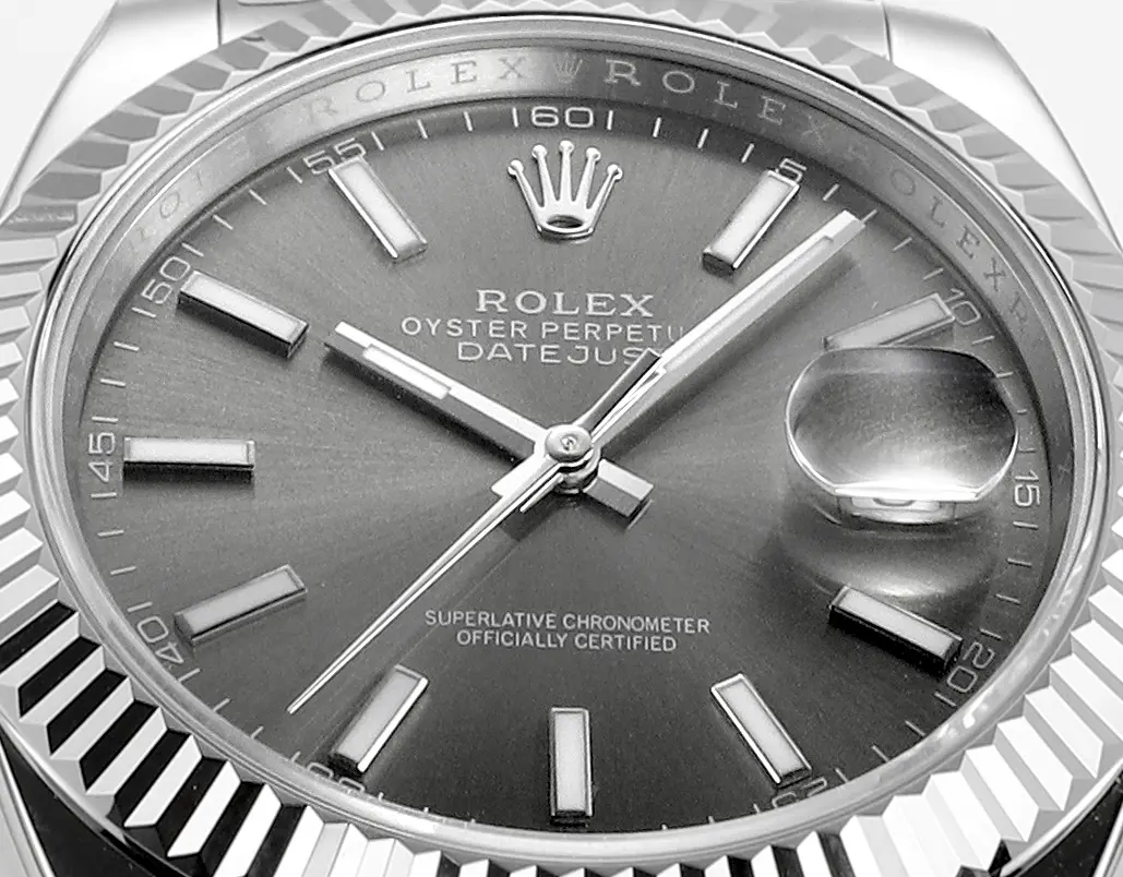Rolex Datejust 41mm Watch – Silver with Grey Dial, Fluted Bezel