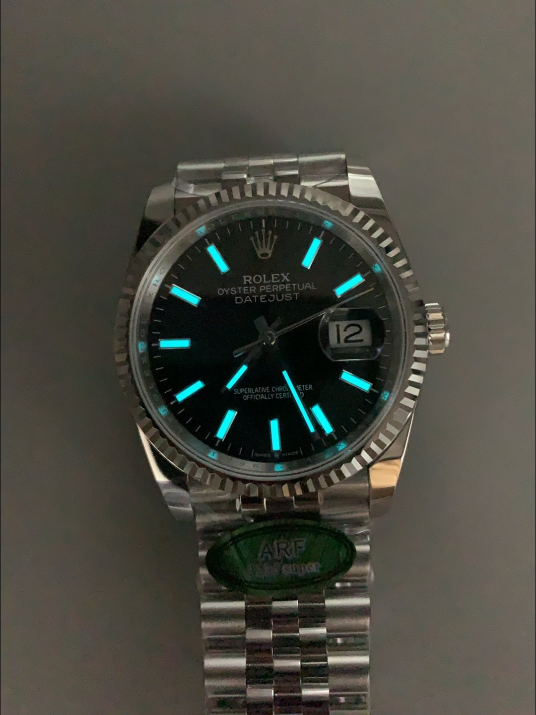 Rolex Datejust Cal.3235 Movement Swiss Watch 904L Steel 41MM – Black Dial( ) — Premium 1:1 super clone. Case: 904L stainless steel case and bracelet. Crystal: Genuine sapphire crystal with AR coating. Movement: Clone Cal. 3235 (28,800 bph, 70hr power reserve, date). Price: $1,650. 12-month movement warranty. Free worldwide shipping on orders over $1,200.