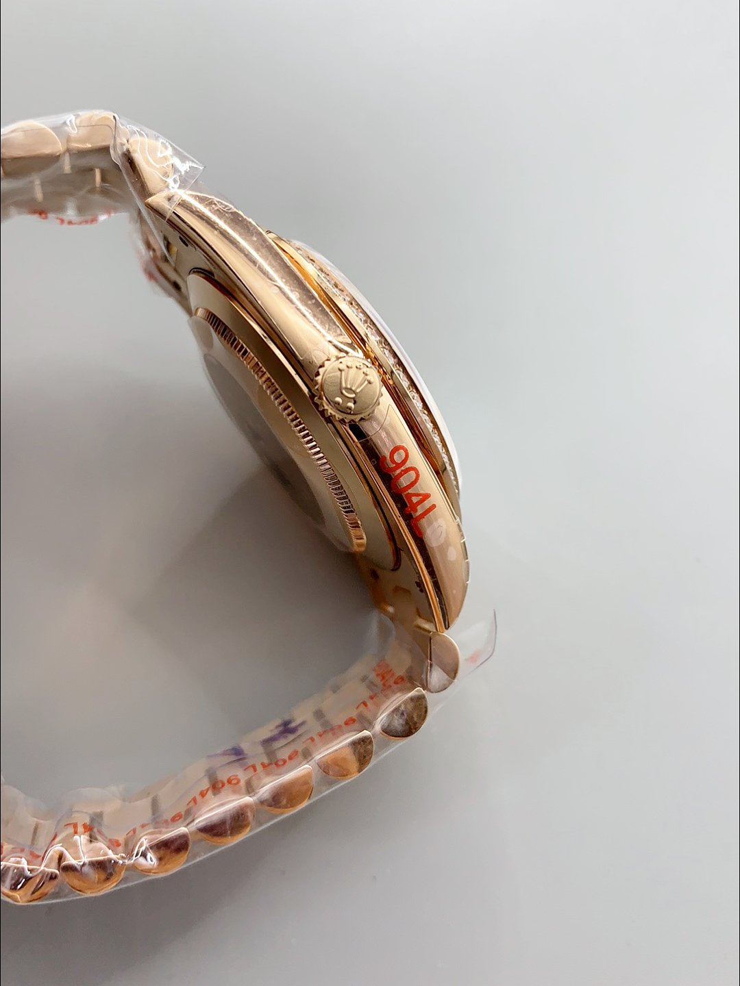 Rolex Day-Date 228239 () — Premium 1:1 super clone. Case: 904L stainless steel case and bracelet. Crystal: Genuine sapphire crystal with AR coating. Movement: Clone Cal. 3235 (28,800 bph, 70hr power reserve, date). Price: $1,650. 12-month movement warranty. Free worldwide shipping on orders over $1,200.