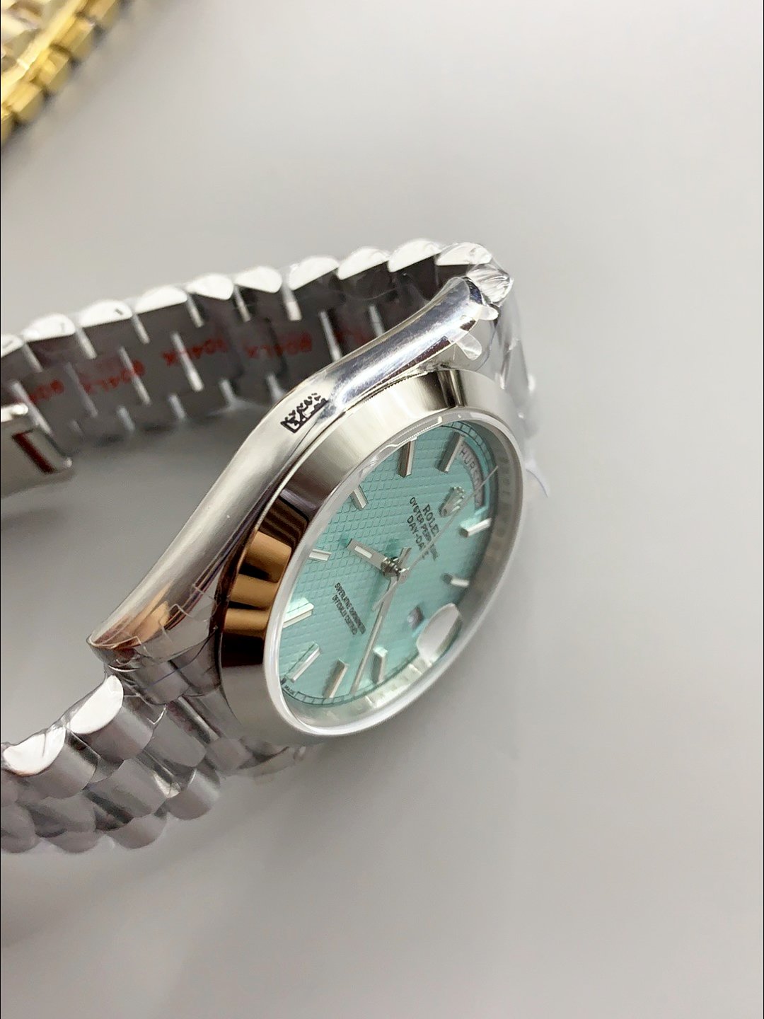 Rolex Datejust Day-Date Ice Blue Dial Middle Eastern Numerals Mechanical Watch — Premium 1:1 super clone. Case: 904L stainless steel case and bracelet. Crystal: Genuine sapphire crystal with AR coating. Movement: Clone Cal. 3235 (28,800 bph, 70hr power reserve, date). Price: $1650. 12-month movement warranty. Free worldwide shipping on orders over $1,200.