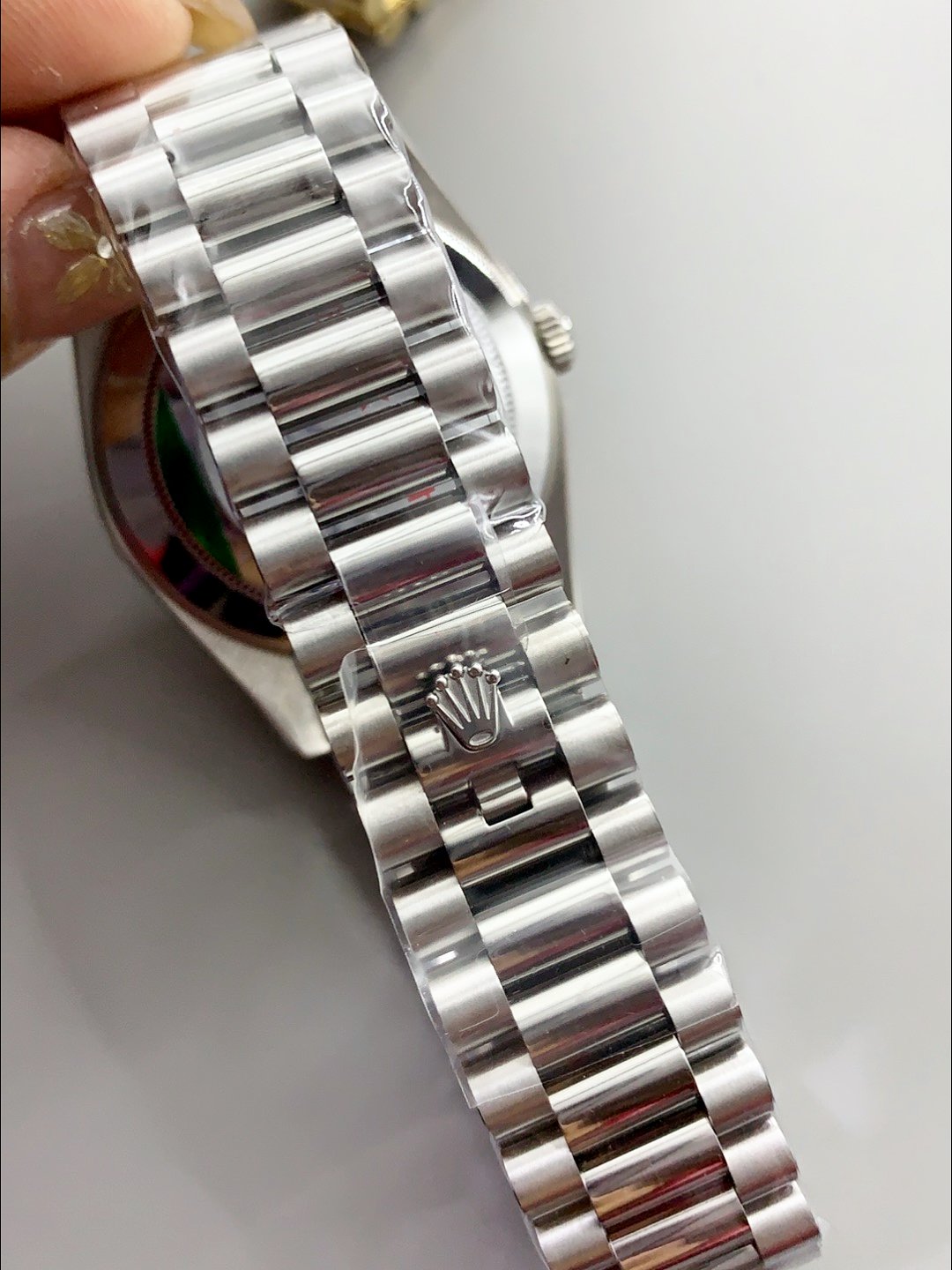 Rolex DayDate 40 watch M228239-0076(1;1 ) — Premium 1:1 super clone. Case: 904L stainless steel case and bracelet. Crystal: Genuine sapphire crystal with AR coating. Movement: Clone Cal. 3235 (28,800 bph, 70hr power reserve, date). Price: $1,650. 12-month movement warranty. Free worldwide shipping on orders over $1,200.