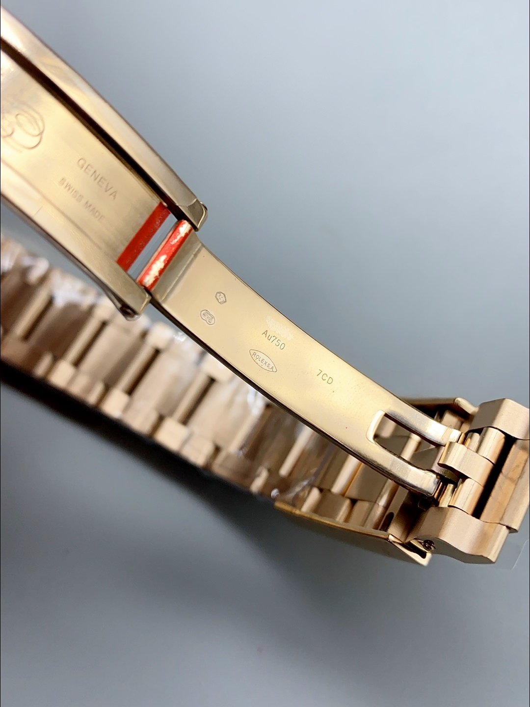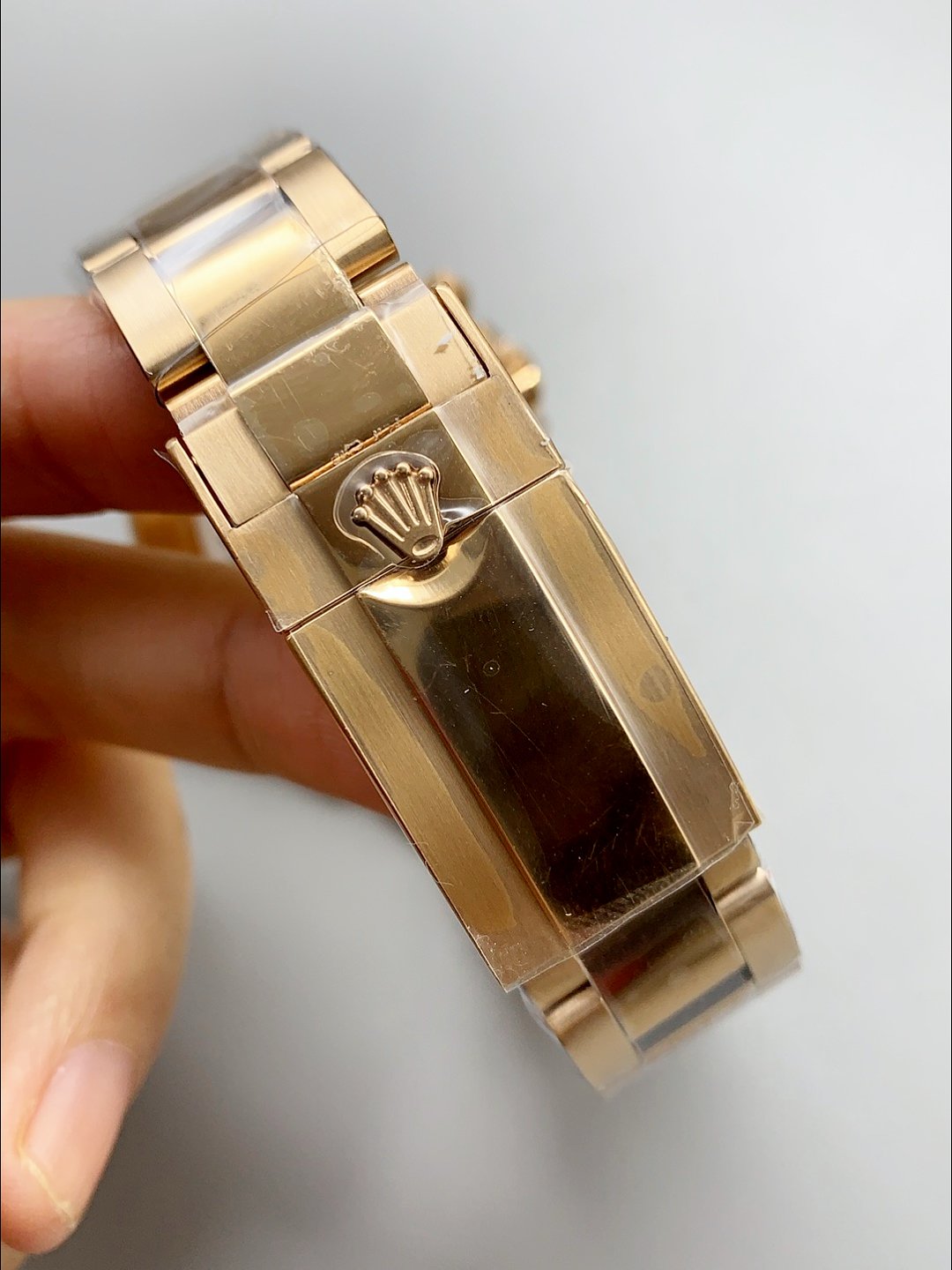 Rolex Daytona 4130 – Rose Gold, Chronograph — Premium 1:1 super clone. Case: 904L stainless steel case and bracelet. Crystal: Genuine sapphire crystal with AR coating. Movement: Clone Cal. 4130 (column-wheel flyback chronograph). Price: $859. 12-month movement warranty. Free worldwide shipping on orders over $1,200.