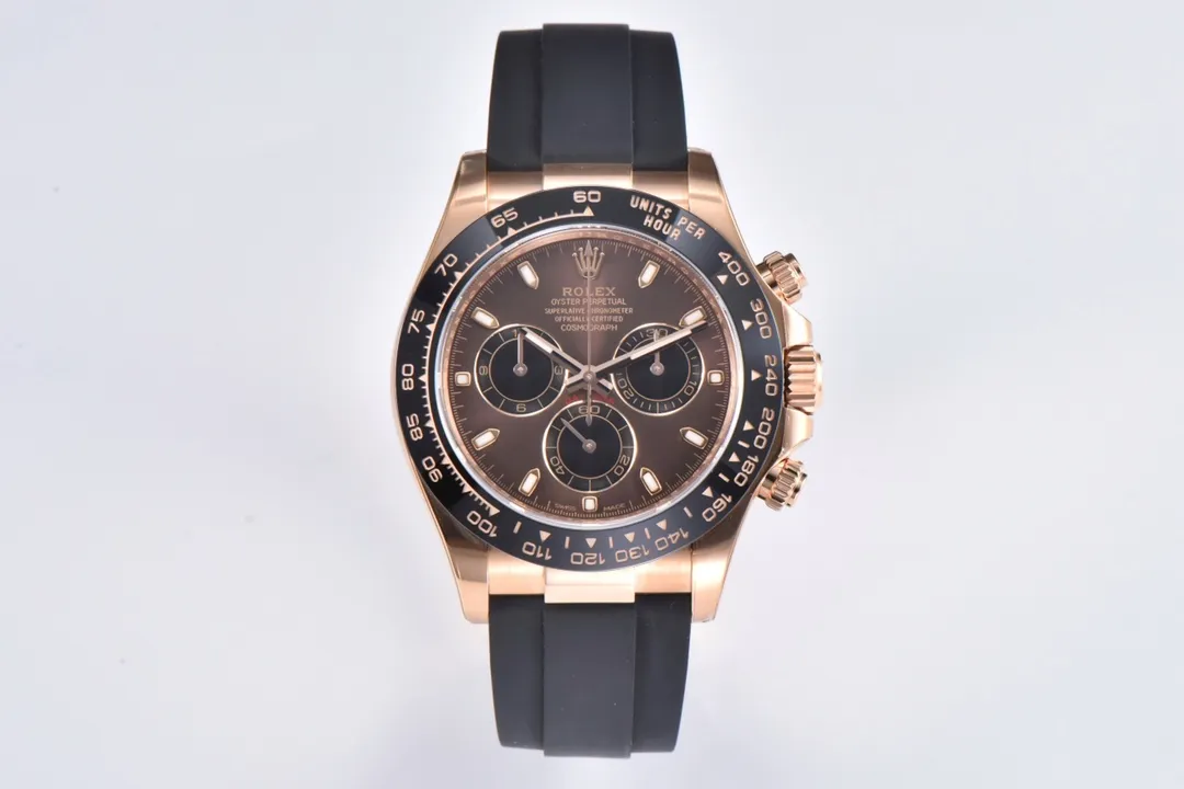 Rolex Daytona Watch with Black Rubber Strap, Brown Dial, and Exquisite