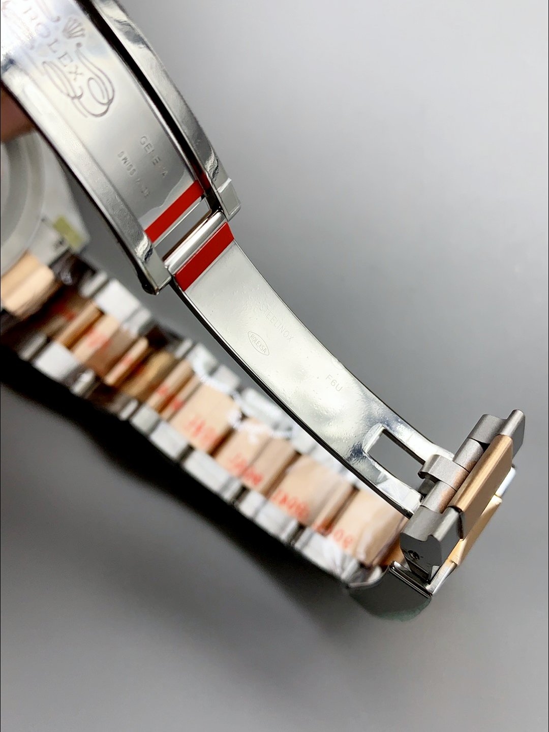 Rolex GMT Masters II 126715CHNR Rose Gold Tiger Iron Dial( ) — Premium 1:1 super clone. Case: 904L stainless steel case and bracelet. Crystal: Genuine sapphire crystal with AR coating. Movement: Clone Cal. 3235 (28,800 bph, 70hr power reserve, date). Price: $1,650. 12-month movement warranty. Free worldwide shipping on orders over $1,200.