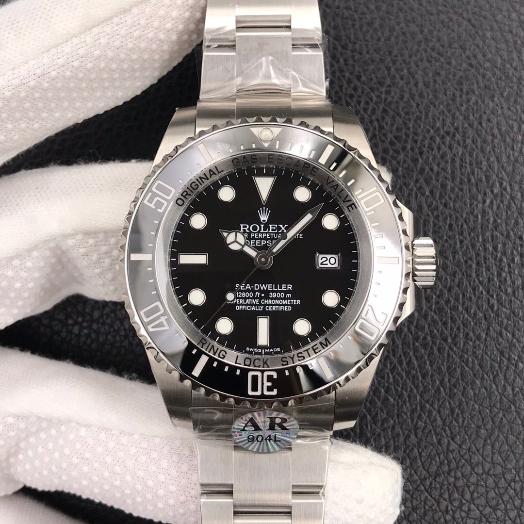Rolex Sea Dweller 116660 — Premium 1:1 super clone. Case: 904L stainless steel case and bracelet. Crystal: Genuine sapphire crystal with AR coating. Movement: Clone Cal. 3235 (28,800 bph, 70hr power reserve, date). Price: $1,650. 12-month movement warranty. Free worldwide shipping on orders over $1,200.