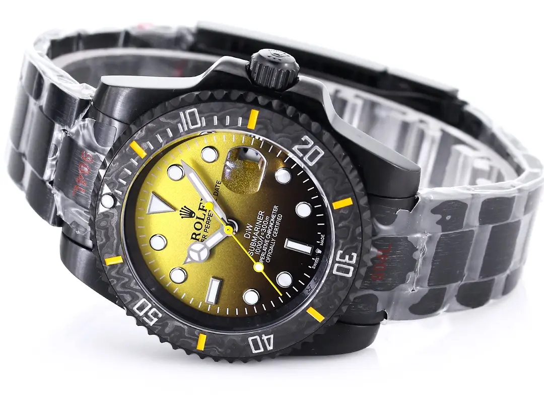 This ROLEX Submariner is an exquisite masterpiece with a carbon fiber bezel in black and a gradient green dial. The stainless steel 904L case is a combination of a stylish design and reliable performance. Explore more about watches and