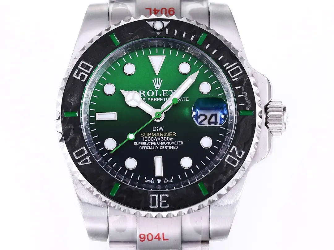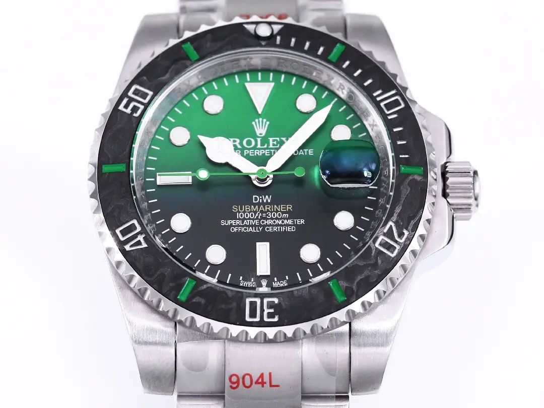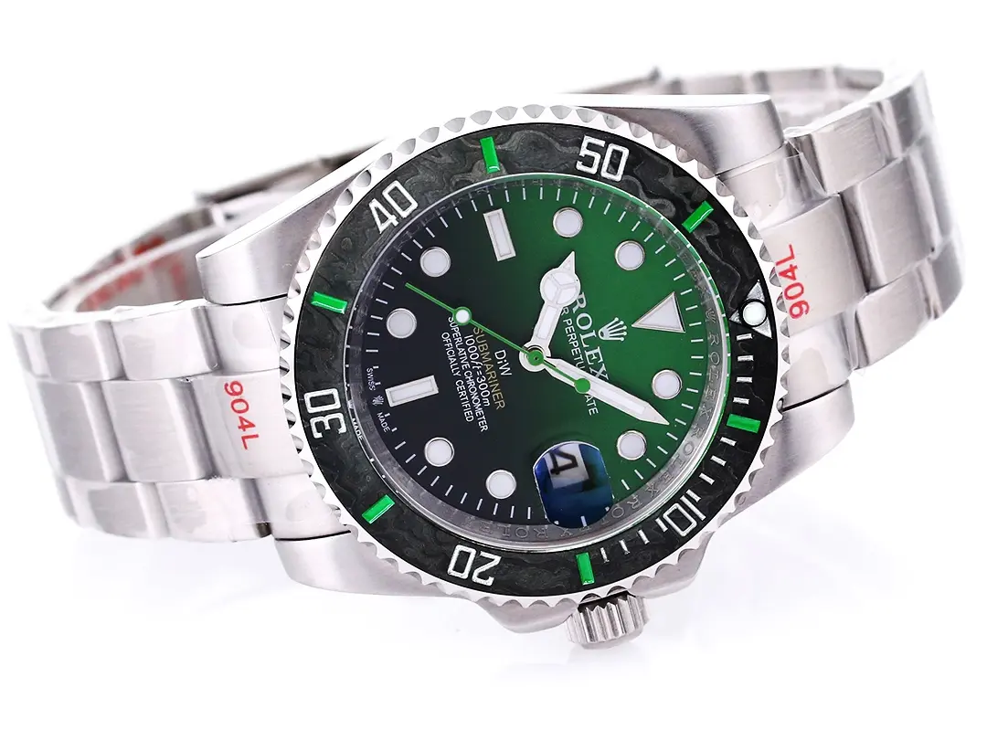 - Custom Green Gradient Dial: The watch features a unique green gradient dial, offering a fresh and distinctive look to the classic Submariner design.
