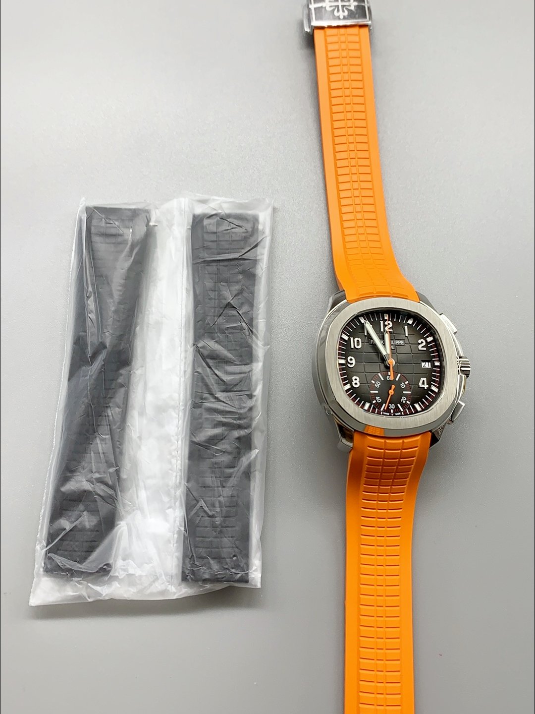 Rolex Yacht-Master “Heavy Edition” – Black Dial with Rainbow Bezel, Rubber Strap — Premium 1:1 super clone. Case: 904L stainless steel case and bracelet. Crystal: Genuine sapphire crystal with AR coating. Movement: Clone Rolex caliber (28,800 bph automatic). Price: $859. 12-month movement warranty. Free worldwide shipping on orders over $1,200.