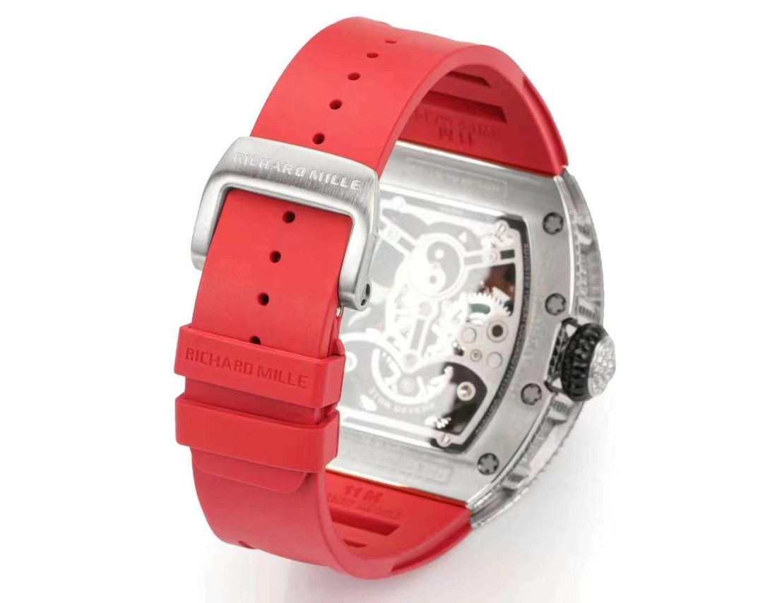 The skeletonized dial features three finely carved koi carps circling the tourbillon – a symbol of luck and fortune.With a state-of-the-art Swiss movement driving it and a bold red rubber strap to match, the RM S10 is more than just a watch – it’s a work of mechanical art, with 50 meters water resistance.