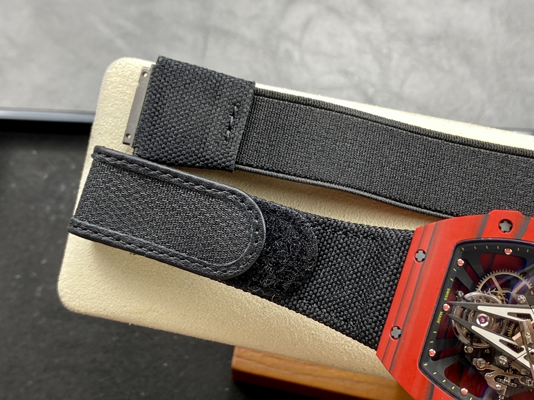The Best Swiss Replica Richard Mille RM27-03 is a stunning timepiece inspired by the Spanish Matador. Featuring a bold red skeleton dial with a bullhead design, it showcases a visible mainspring barrel, mechanical gears, and tourbillon escapement. Crafted with NTPT carbon fiber and quartz composite technology, the case is lightweight and durable. The red and black striped crown complements the striking design. Paired with a comfortable rubber Velcro strap, sapphire glass, and 50-meter water resistance, this AAA Swiss movement watch is the pinnacle of luxury and craftsmanship.