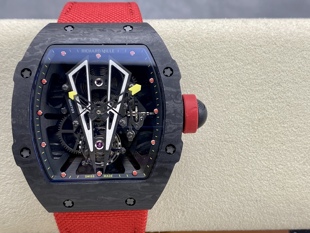 Swiss Replica Richard Mille RM27-03 Black Carbon Fiber Case with Red Woven Strap