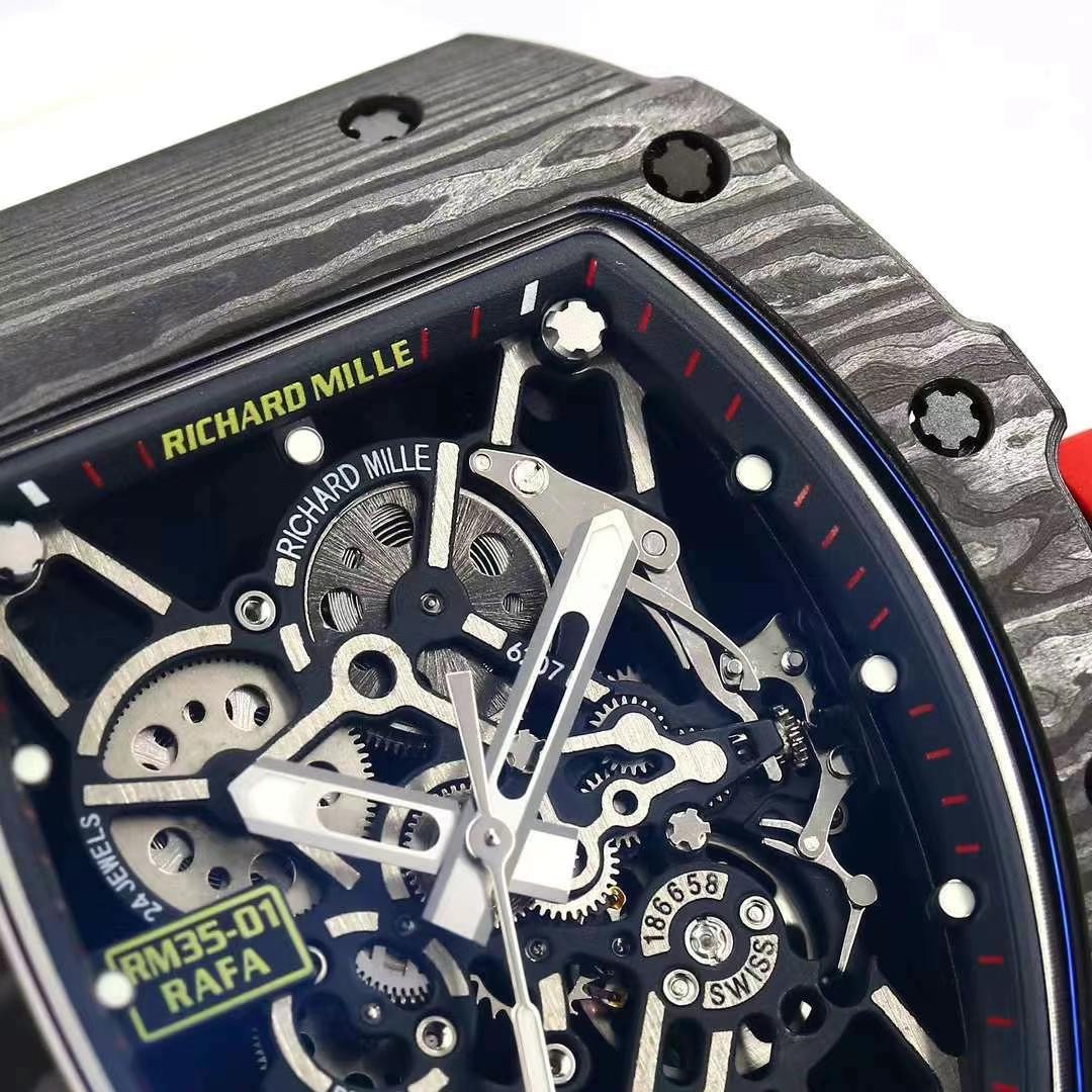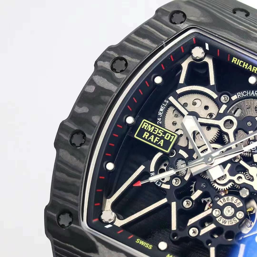Top Swiss Replica Richard Mille RM35-01 – Carbon Fiber Case & White Rubber Strap