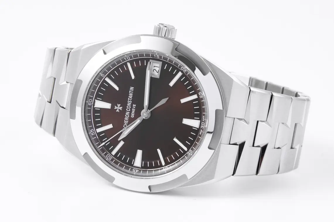 - Elegant Design. the 4500V Vacheron-Constantin Overseas Series features an elegant stainless steel bracelet with a brown dial that symbolizes top-tier luxury. This watch will last a lifetime. The watch has a durable steel case that seamlessly blends with the wristband. Vacheron Constantin’s Maltese Cross emblem is displayed on the rear. Automatic mechanical Cal.5100 movement is reliable and accurate. This watch is equipped with a large power reserve, which allows it to be worn for a longer period of time. This timepiece’s design is flexible and it can be worn in a business setting, a sporty one, or purely casual. Rubber or steel straps are available. This watch has anti-magnetic functions and a crown that can be slid to avoid magnetic interference. Vacheron-Constantin Overseas 4500V is a luxury timepiece which combines elegance and functionality. The brown dial with stainless steel bracelet makes this accessory perfect for every occasion. Discover more about