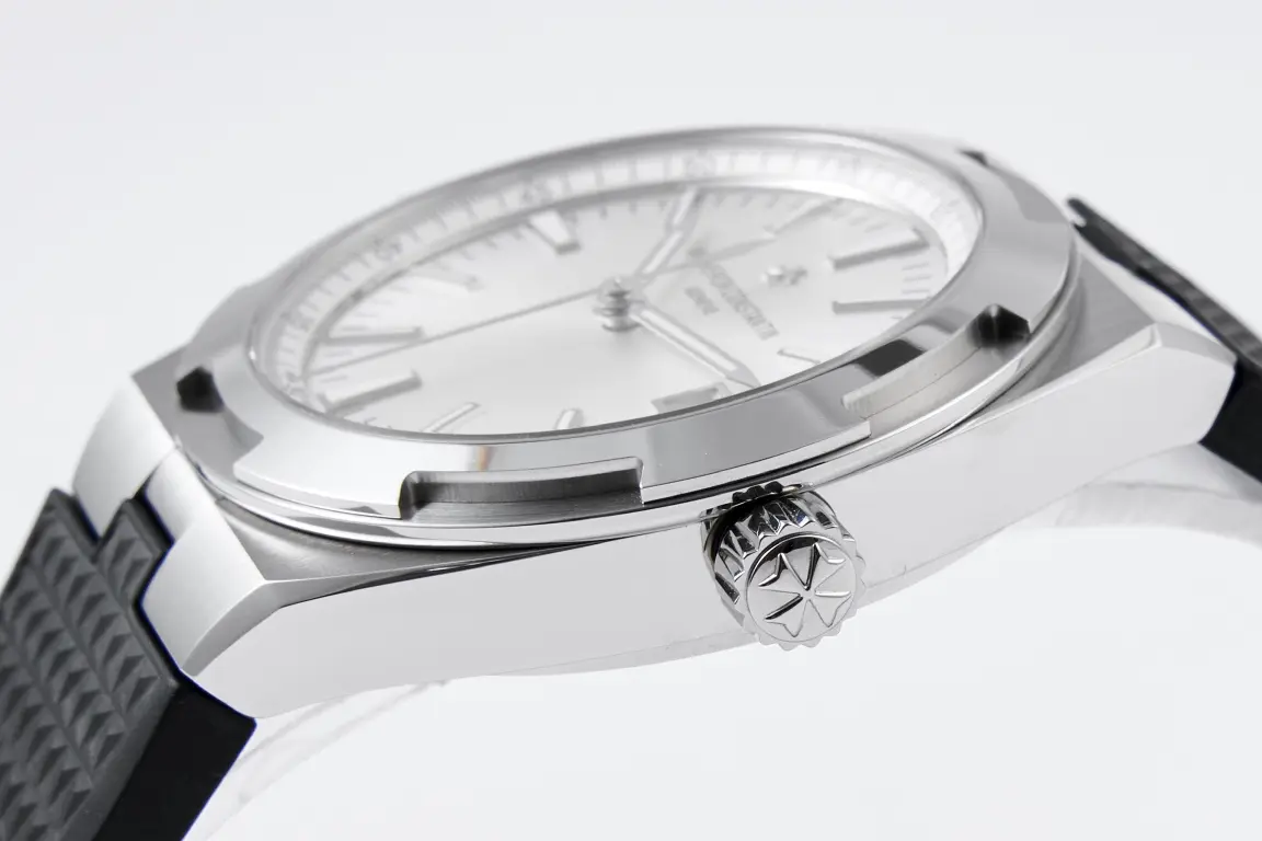 - Design Luxury: The Vacheron Constantin Overseas series 4500V features an elegant black rubber strap and silver dial that embody steel luxury watches. The watch itself is an amazing piece of workmanship. The case is made of polished stainless steel and flows smoothly into the strap. This versatile style works well in business settings, as well as sports and casual ones. The watch offers the option of a rubber or steel band to create a more versatile appearance. The Maltese Cross logo is featured at the rear of the watch to add prestige and authenticity. This crown has an anti-magnetic design and is screwed down to prevent interference by magnetic fields.