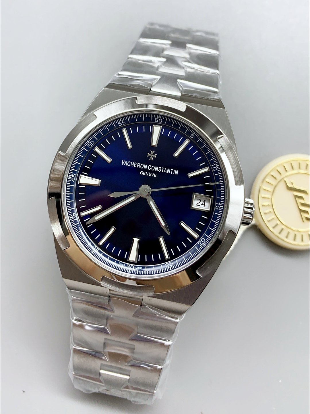 Vacheron Constantin Overseas Blue Dial () — Premium 1:1 super clone. Case: 904L stainless steel or 18k gold case. Crystal: Genuine sapphire crystal with AR coating. Movement: Clone Cal. 5100 (28,800 bph, date). Price: $1,650. 12-month movement warranty. Free worldwide shipping on orders over $1,200.