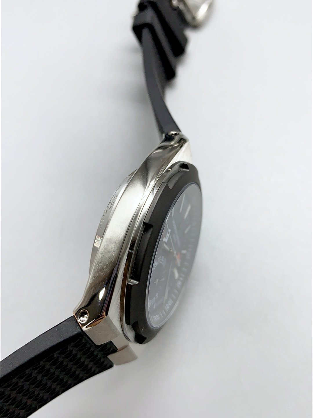Vacheron Constantin Overseas 4500V Series – Black Dial, Rubber Strap, Luxury Steel – Quality — Premium 1:1 super clone. Case: 316L stainless steel or 18k gold case. Crystal: Genuine sapphire crystal with AR coating. Movement: Clone Cal. 5100 (28,800 bph, date, power reserve indicator). Price: $700. 12-month movement warranty. Free worldwide shipping on orders over $1,200.